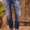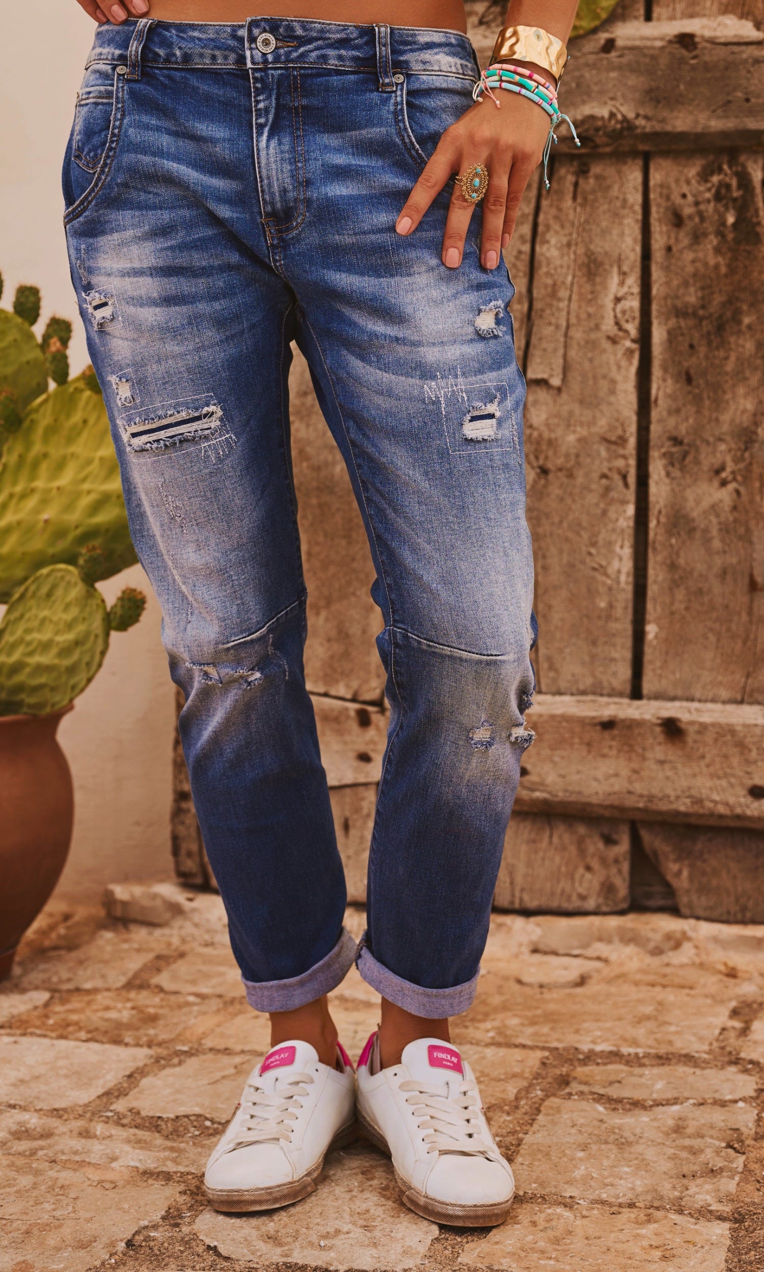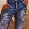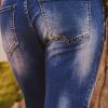 Son effet délavé et déchiré avec des patchs en dessous ne laissant pas voir la peau ajoutent une touche tendance.