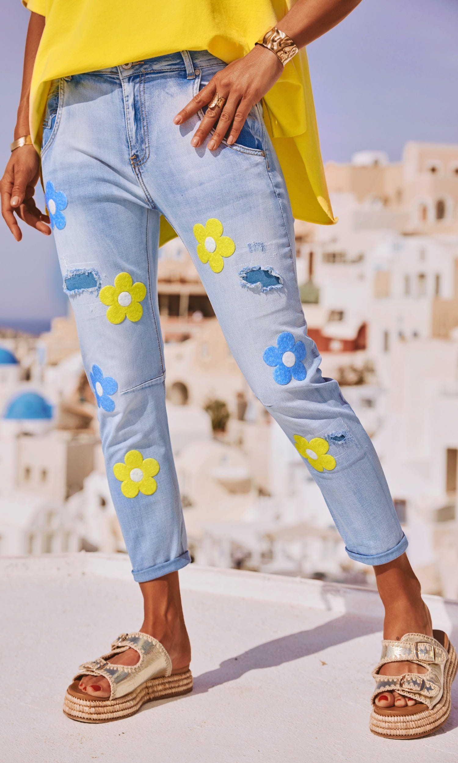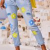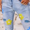 Les motifs floraux embellissent l'ensemble du jean's.