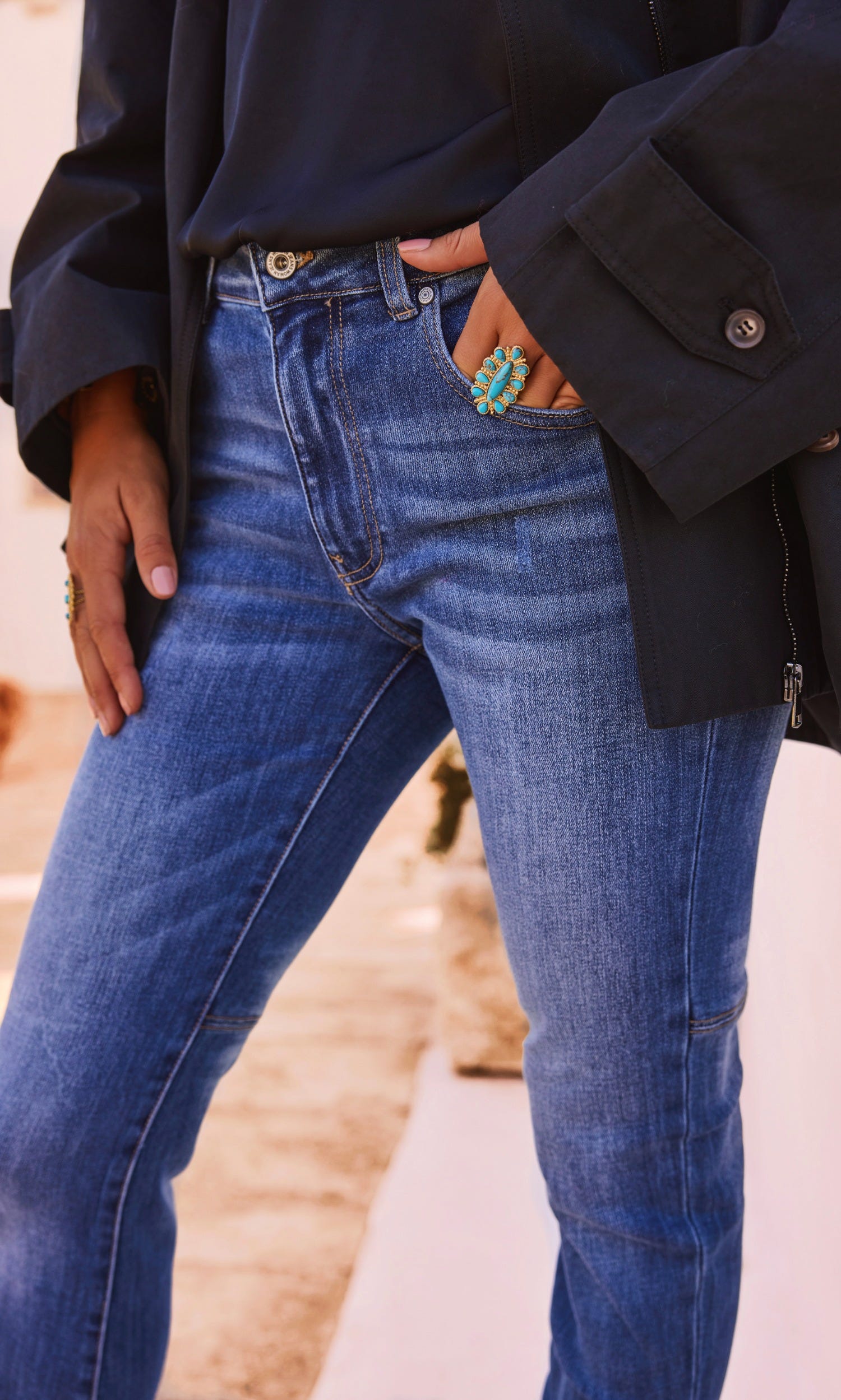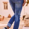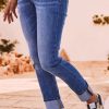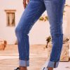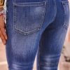 Son effet délavé avec un détail déchiré et des surpiqûres derrière les genoux apportent une touche moderne.