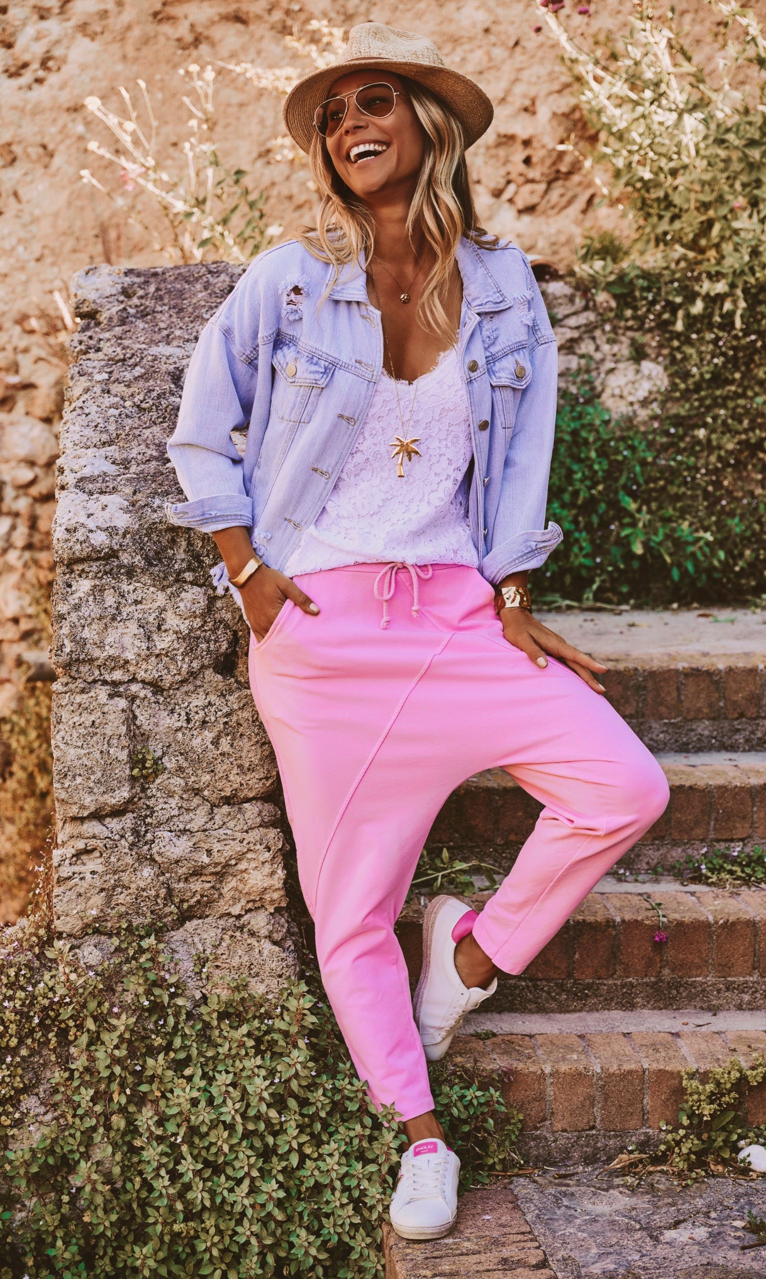 Découvrez notre jogg sarouel rose à la coupe loose, idéal pour un look décontracté.