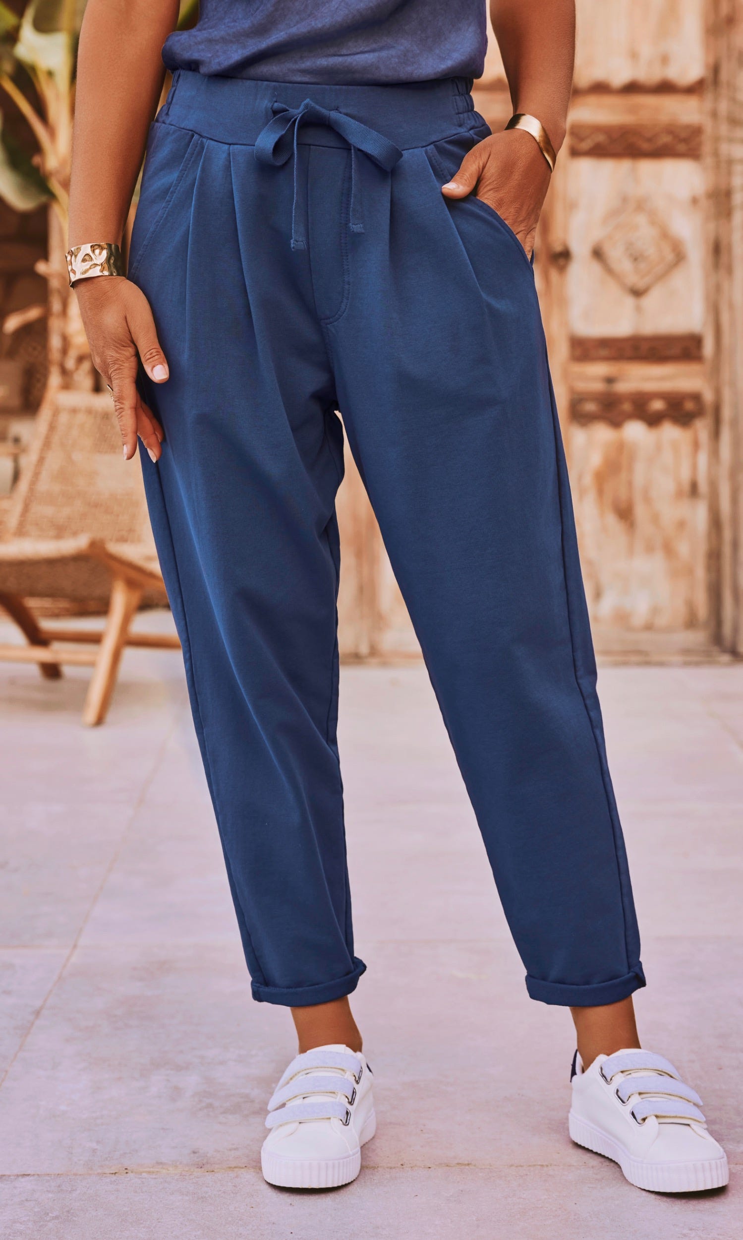 Découvrez notre jogg bleu marine en coupe décontractée, idéal pour un style confortable au quotidien.