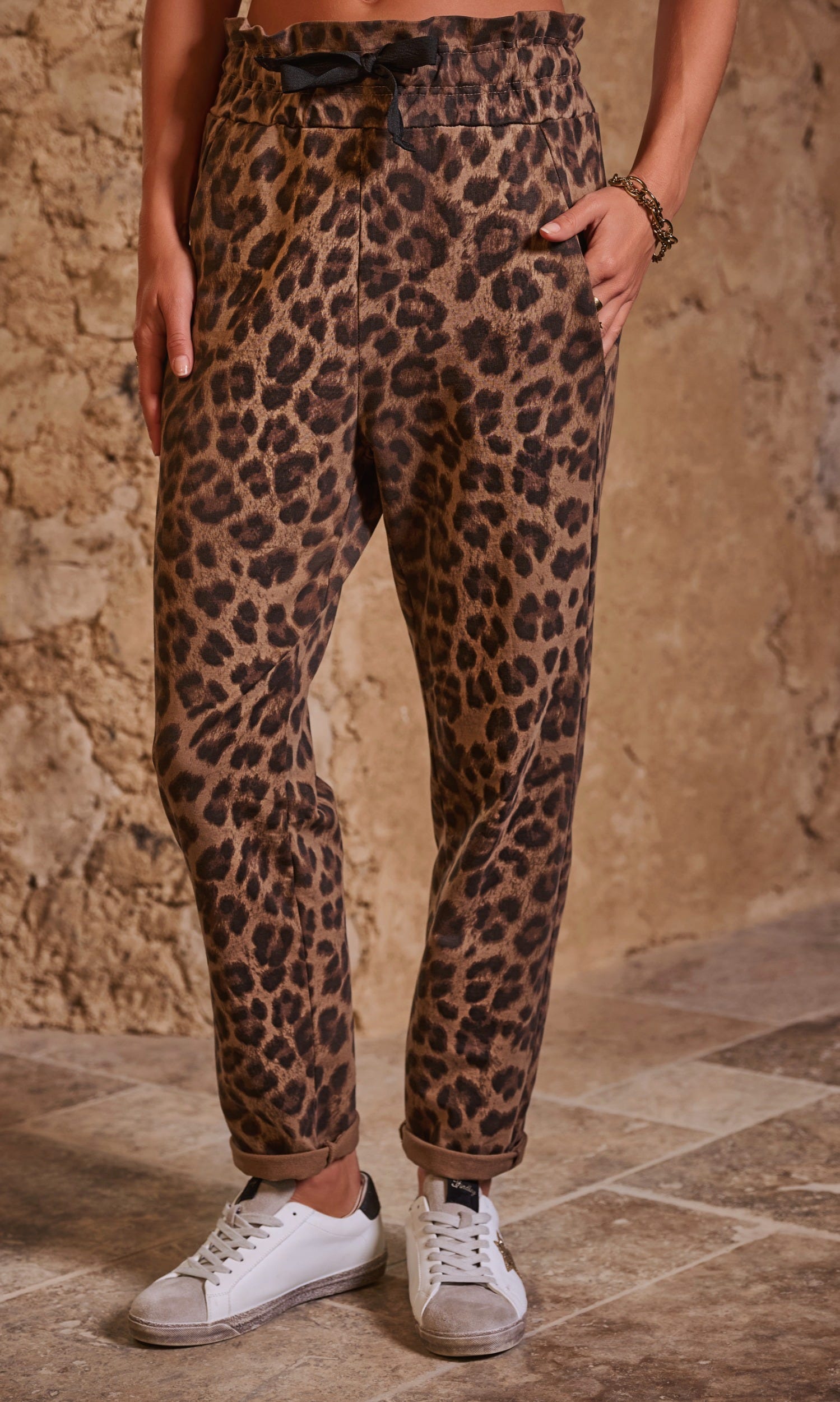 Équipé de deux poches italiennes sur le devant, il affiche un motif léopard sur l'ensemble.