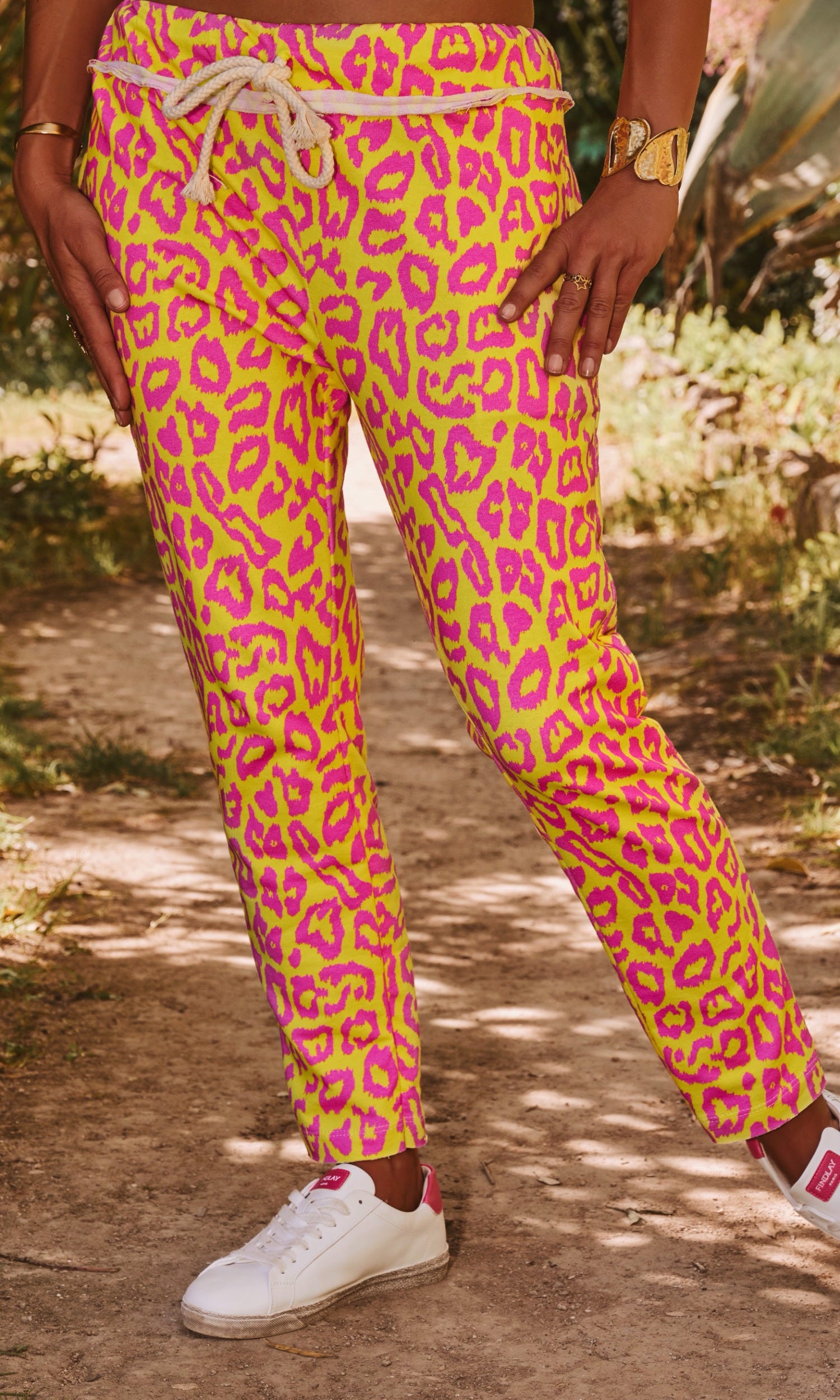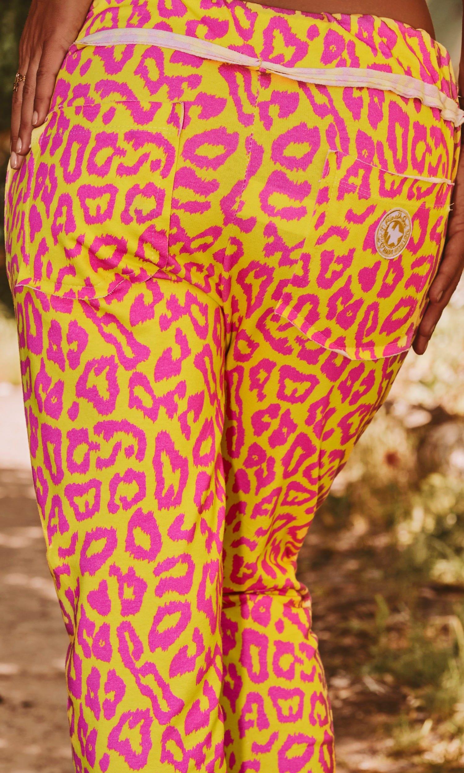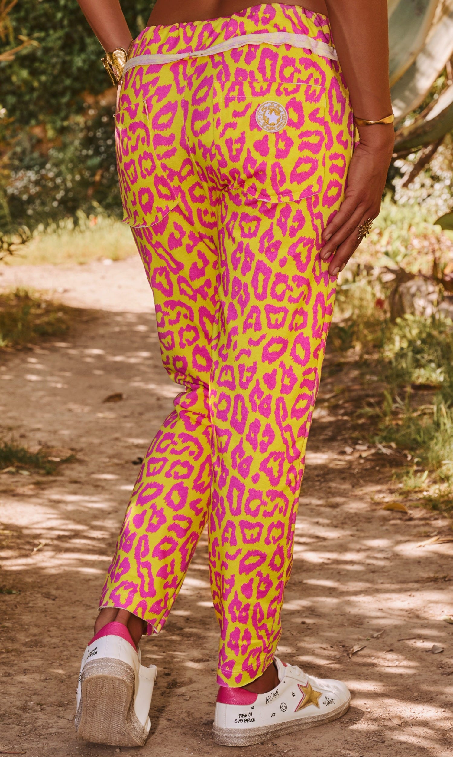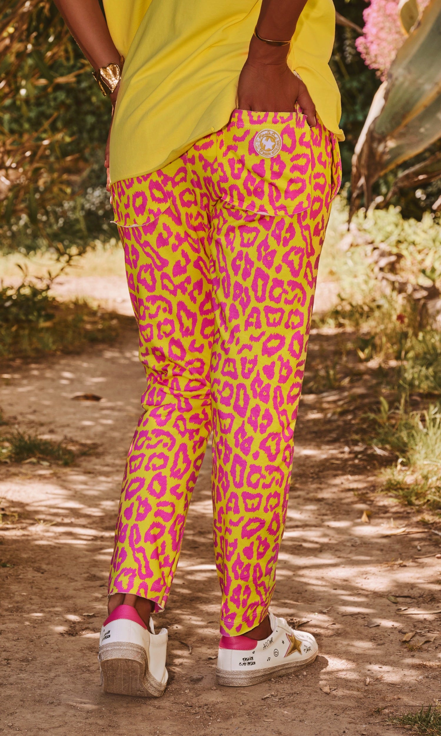Il arbore un motif rose léopard élégant, deux poches italiennes à l'avant et deux poches plaquées à l'arrière, dont une avec écusson.