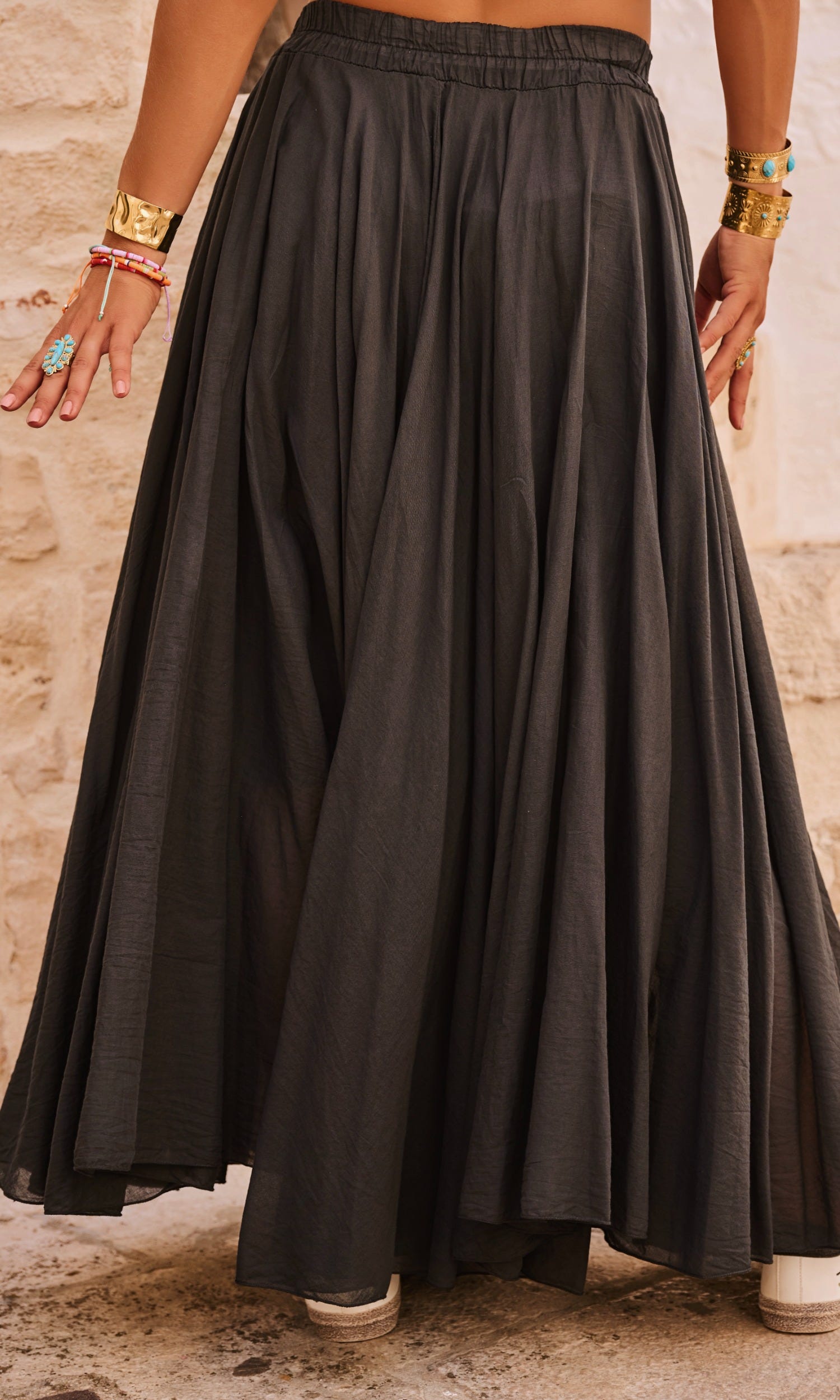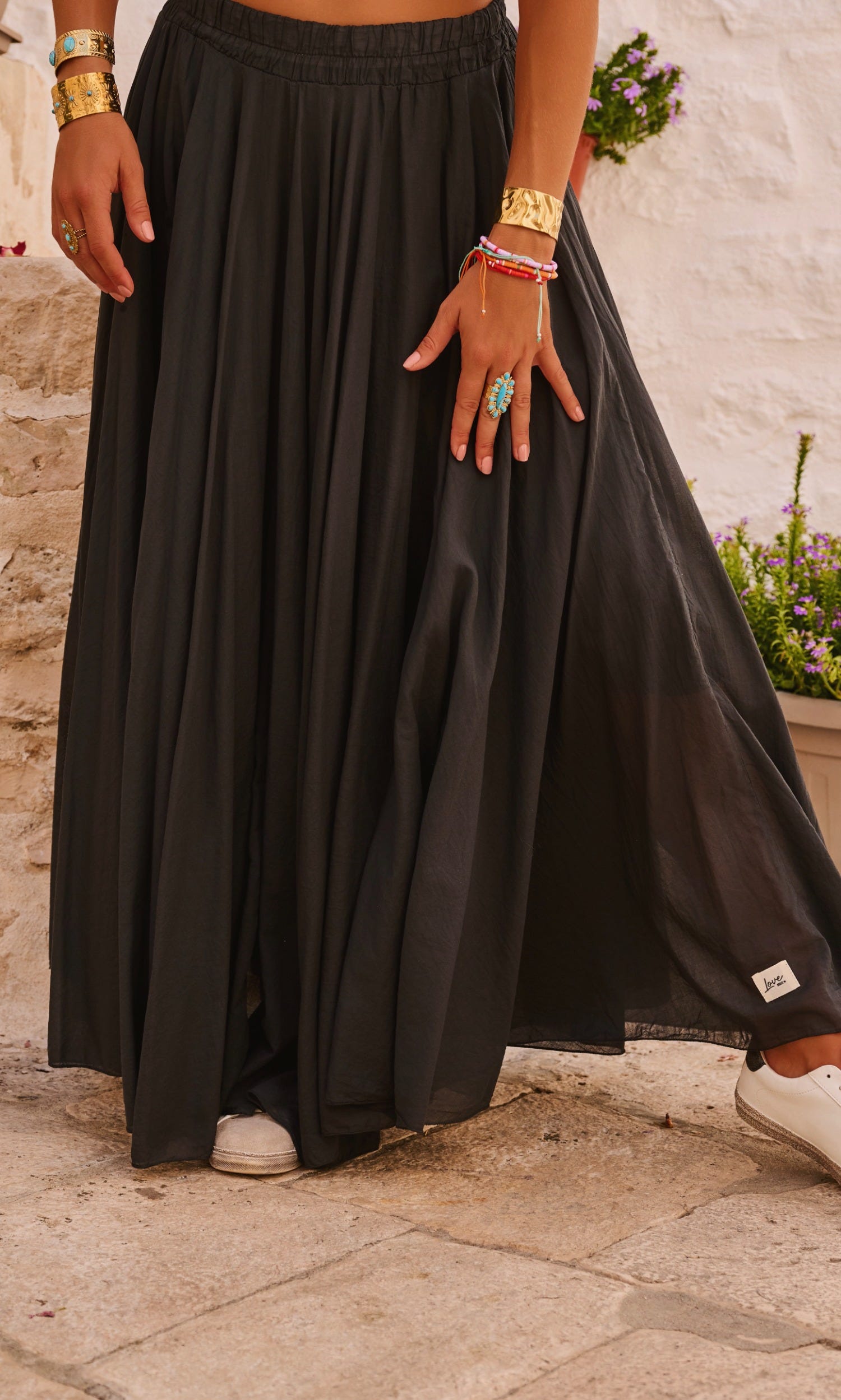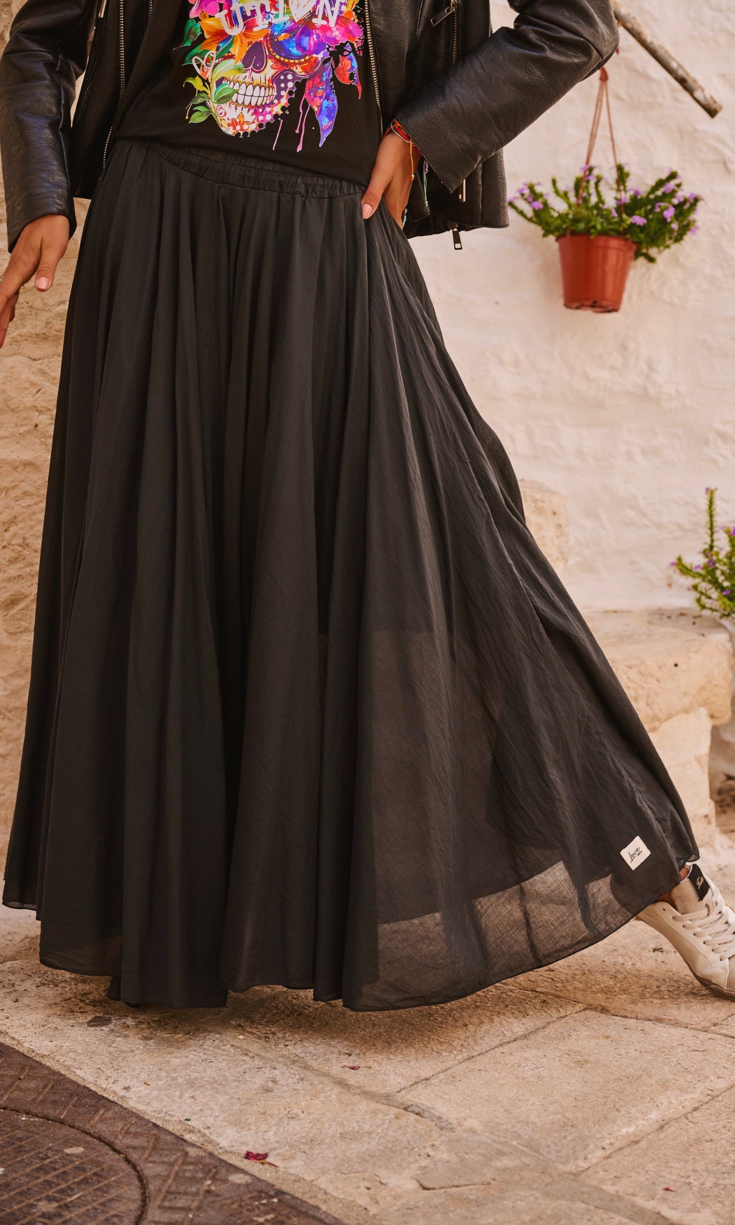 Découvrez notre jupe noire coupe trapèze, parfaite pour apporter une touche de fraîcheur à votre garde-robe.