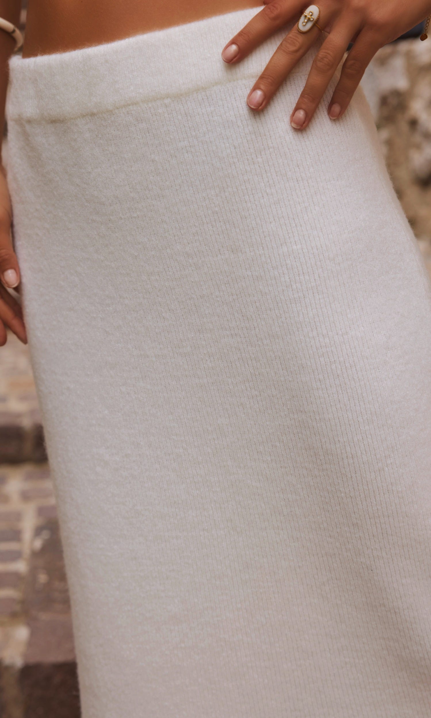 Découvrez notre jupe blanc cassé cozy à la coupe droite, conçue pour allier confort et style.