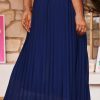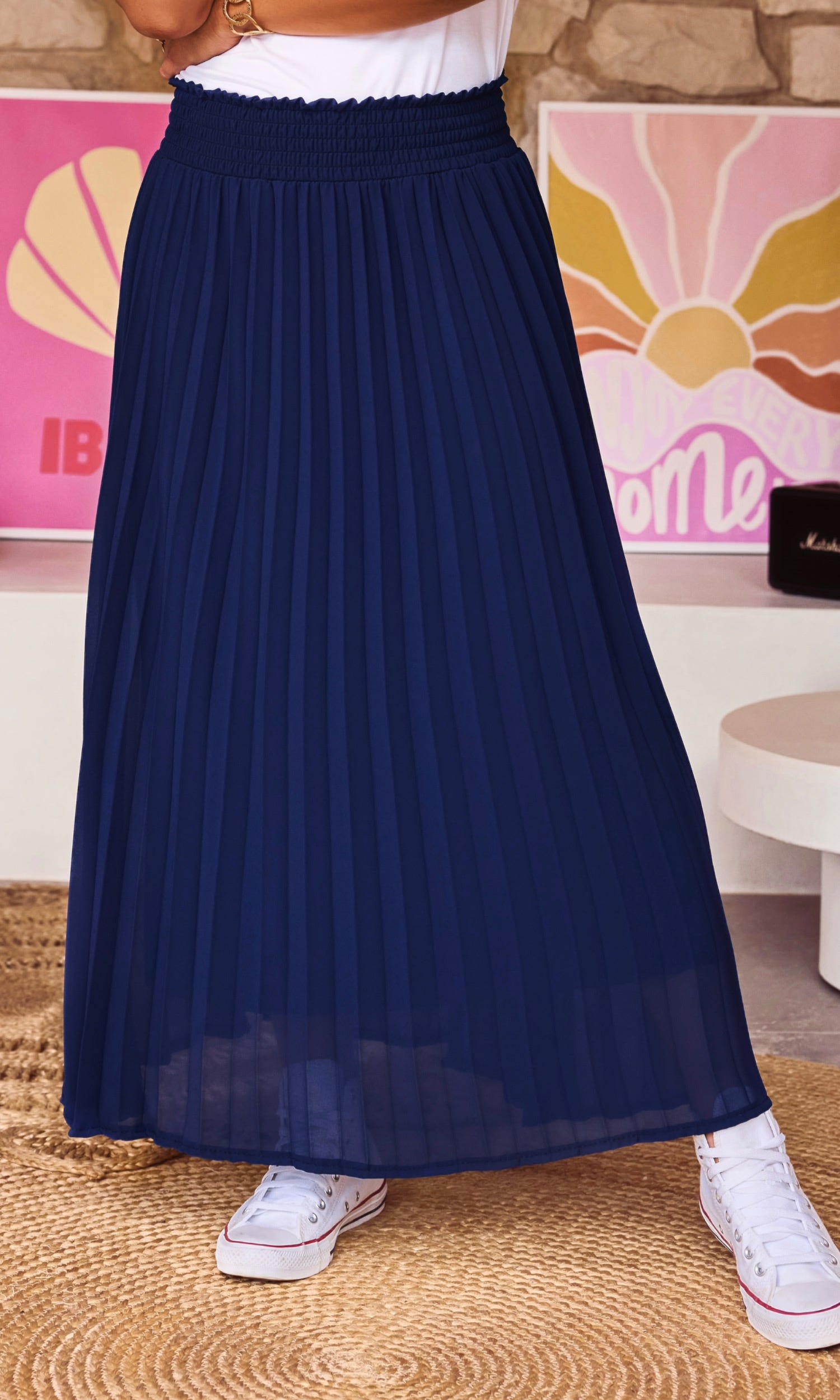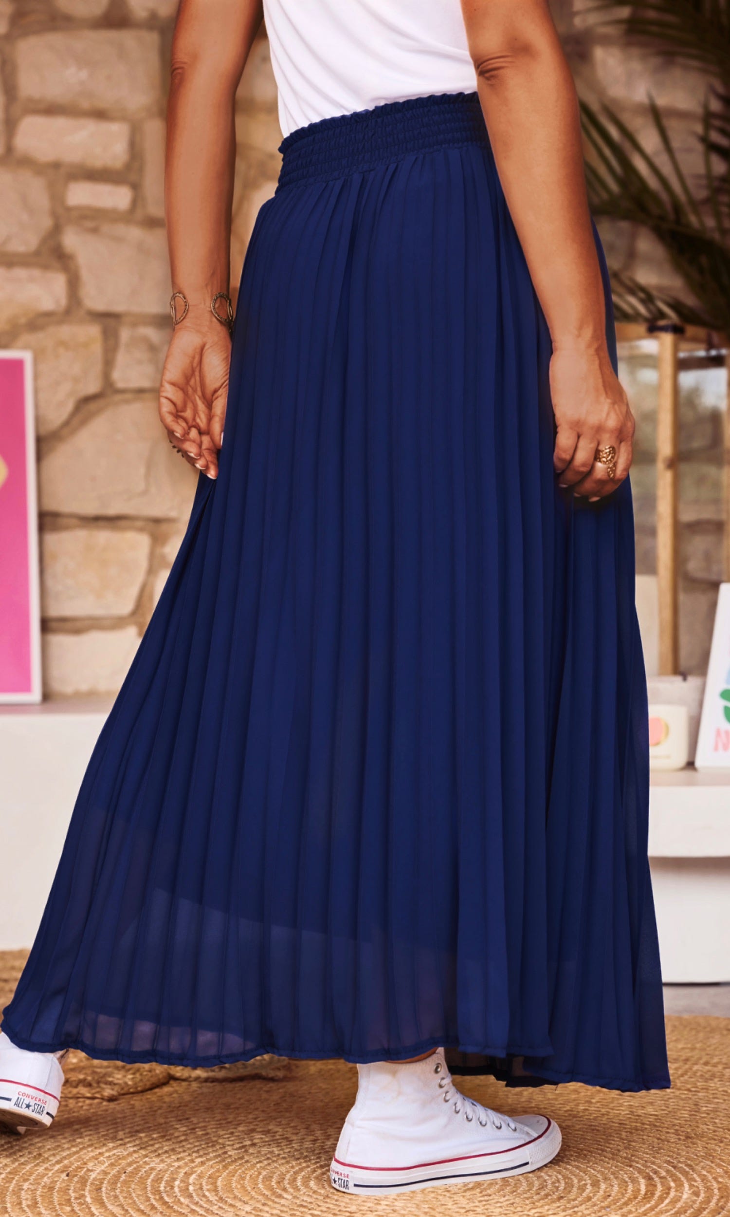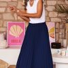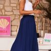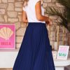 Découvrez notre jupe plissée bleu marine, fluide, à la coupe droite élégante