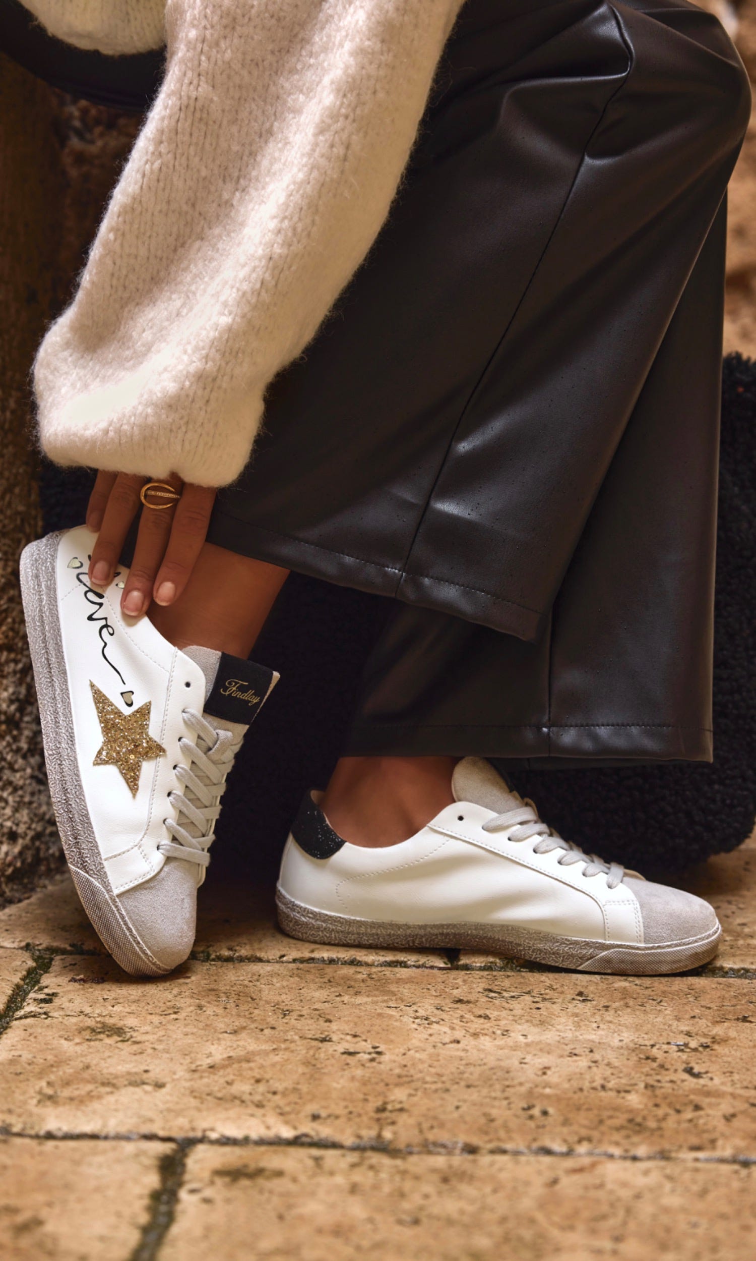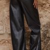 Découvrez notre jean coupe large en simili cuir, taille haute pour un style moderne.