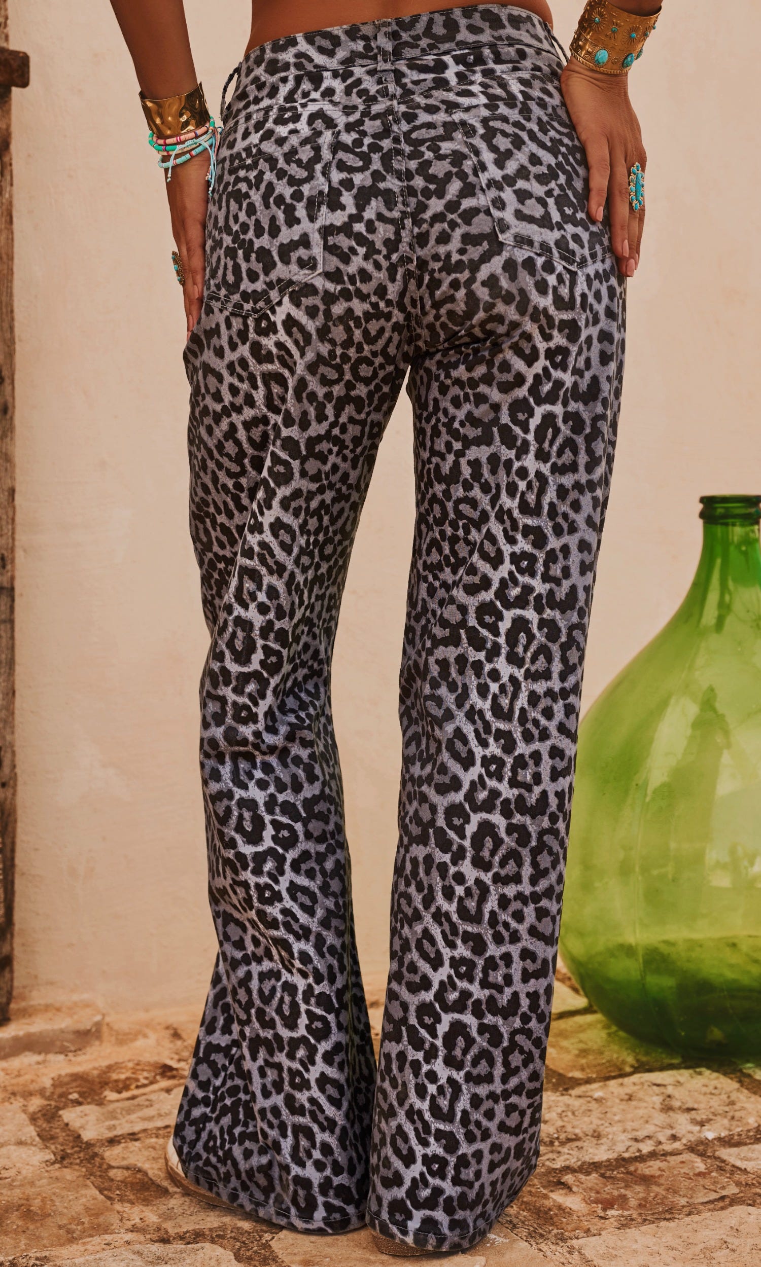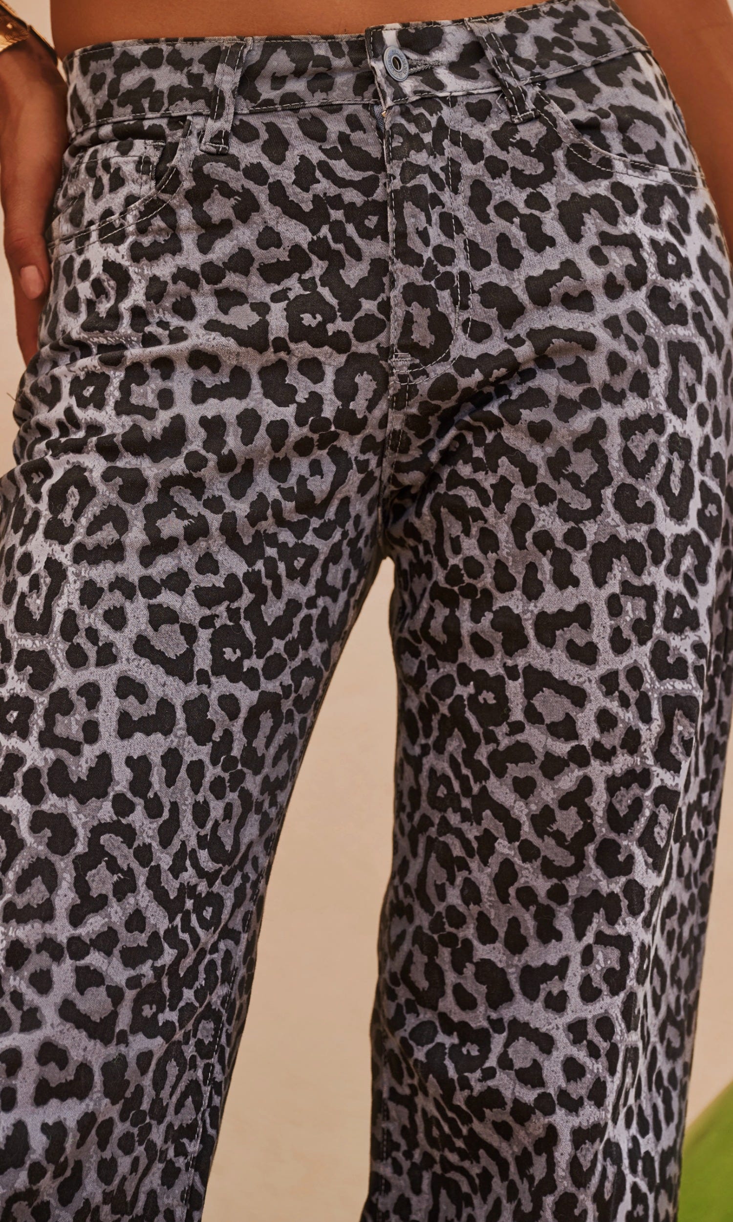Découvrez notre pantalon en toile gris léopard, à la coupe droite et stretch pour un confort optimal.