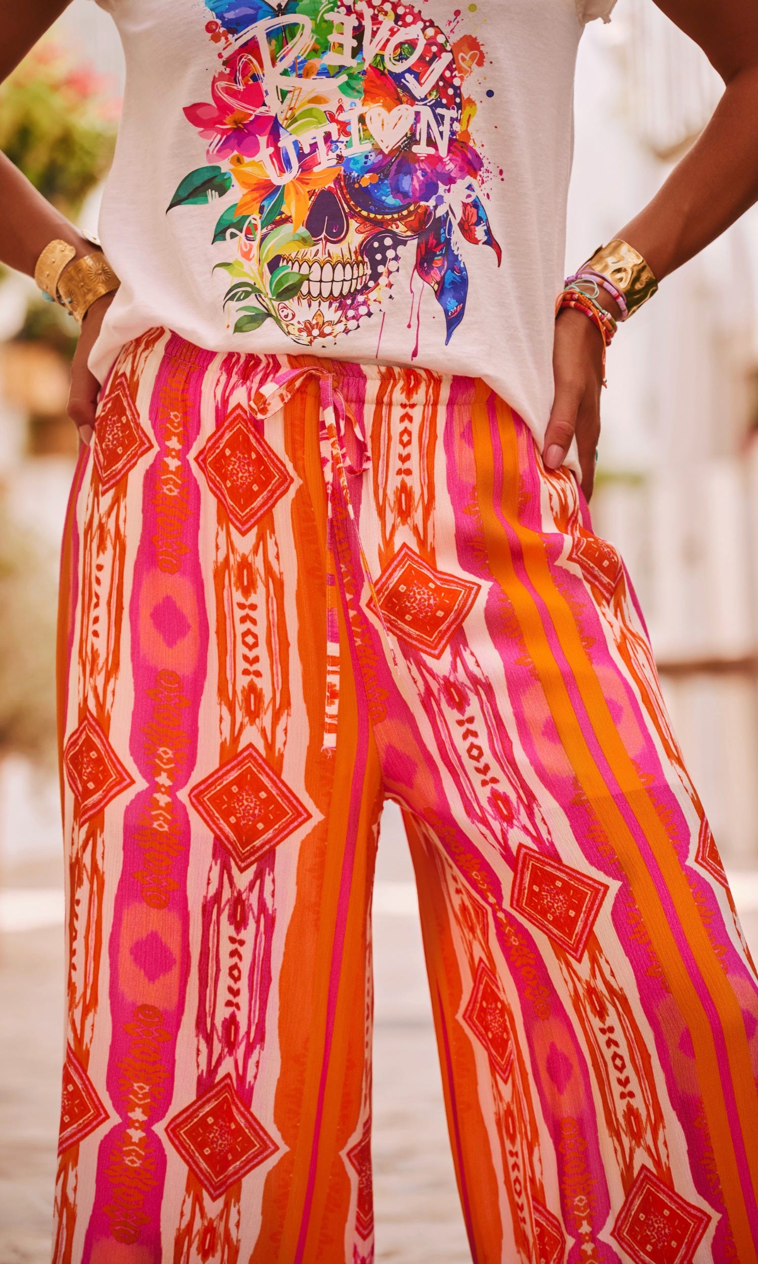 Découvrez notre pantalon orange fluide, alliant confort et style.
