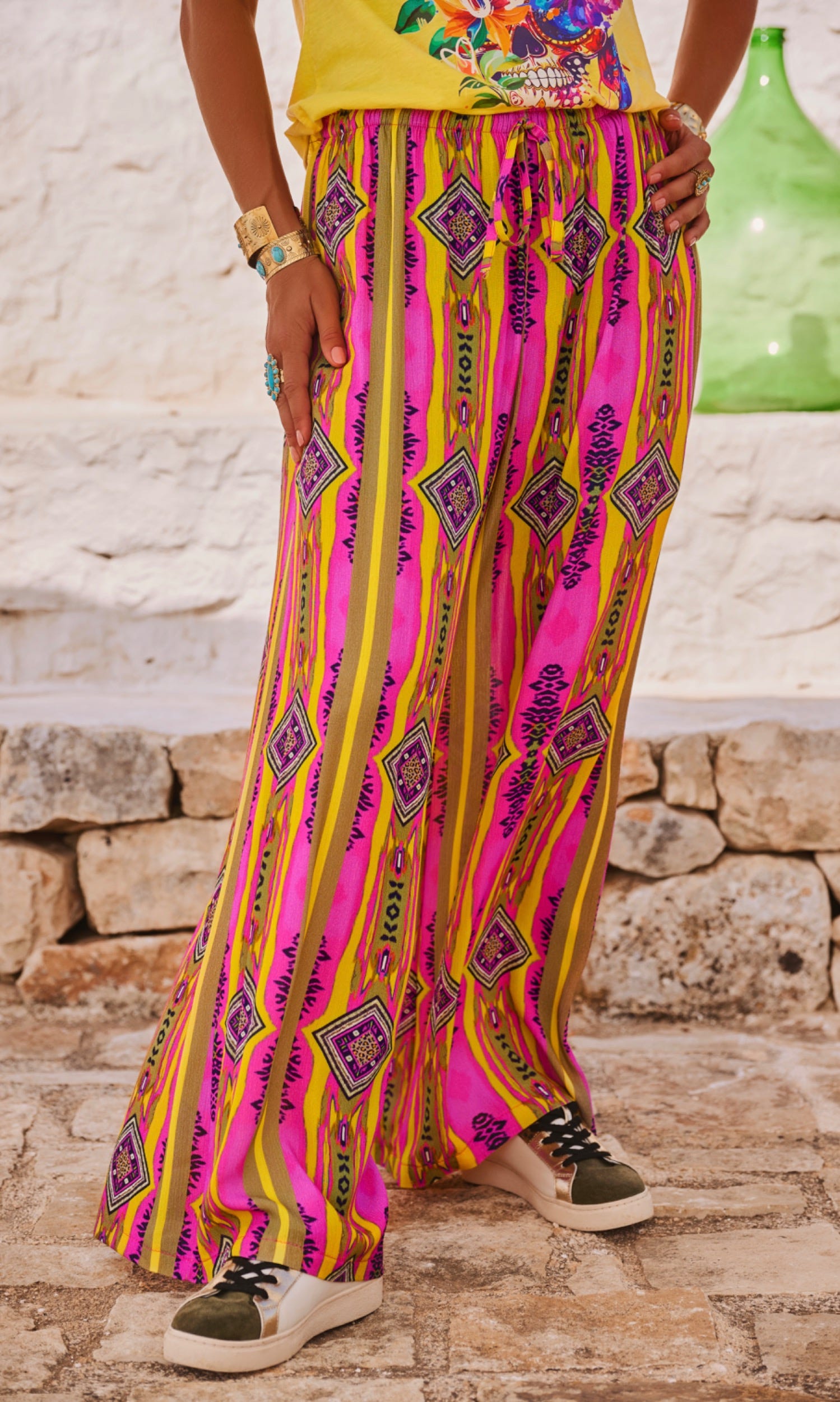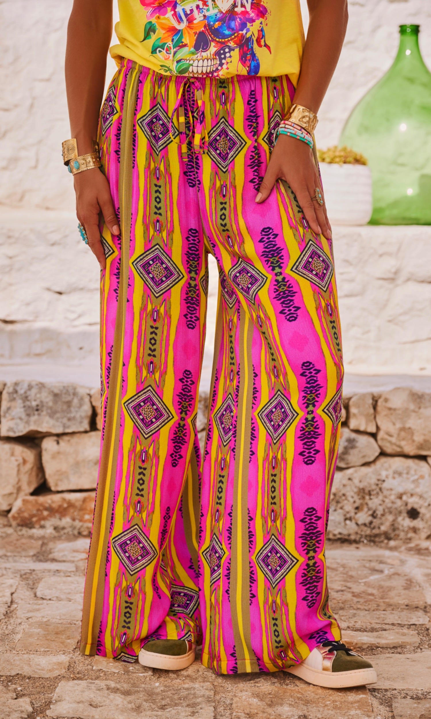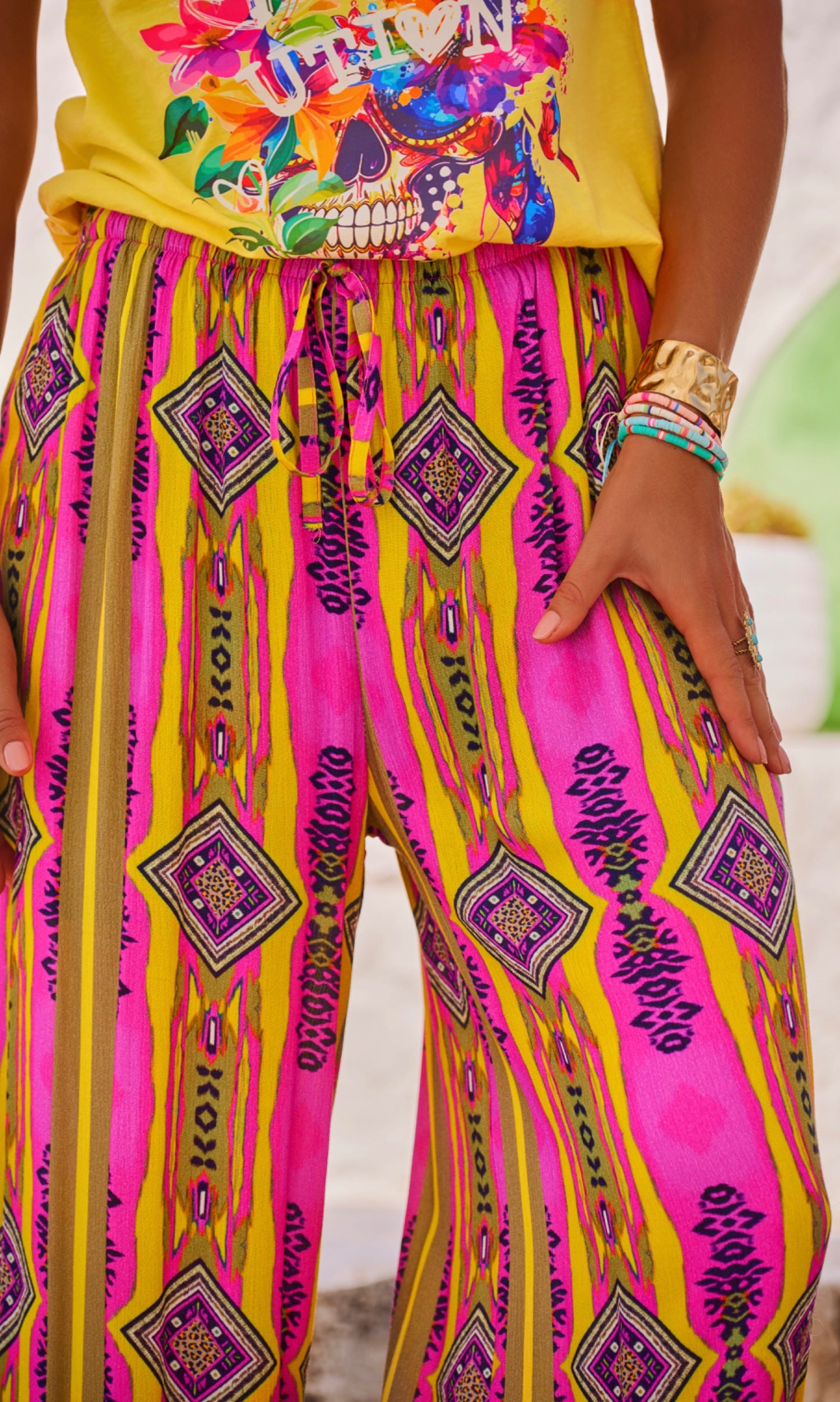 Découvrez notre pantalon rose fluide, parfait pour un look à la fois chic et décontracté.