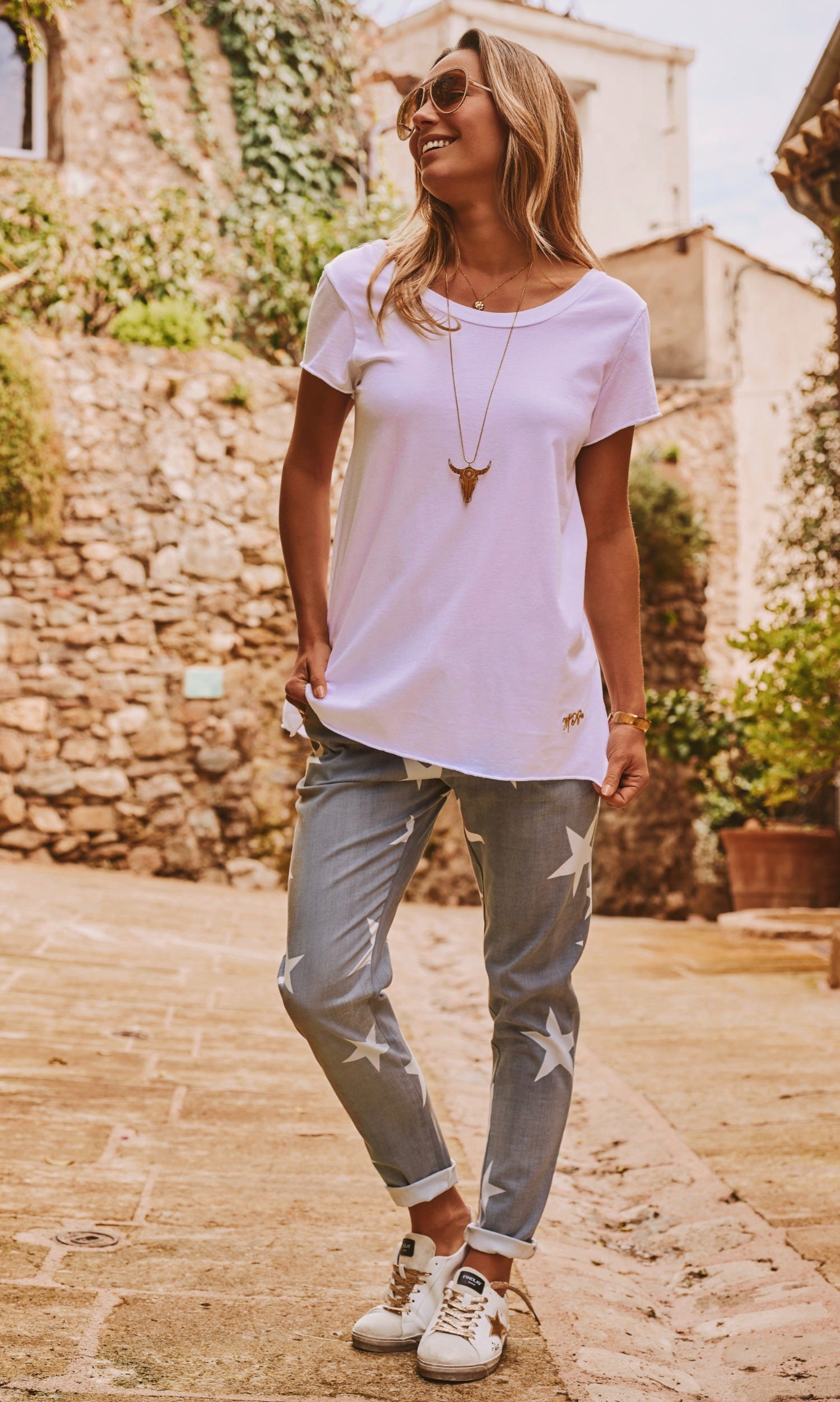 Son effet froissé et son motif star en font une pièce tendance incontournable.