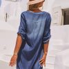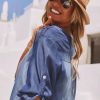 Ses manches 3/4 à patte de boutonnage ajoutent une touche chic, tandis que la finition arrondie en partie basse et l'effet délavé lui confèrent un style décontracté.