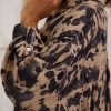 La fermeture boutonnée sur toute la hauteur et la partie basse arrondie révèlent un style unique, sublimé par un tie and dye et la broderie MDS sur le devant.