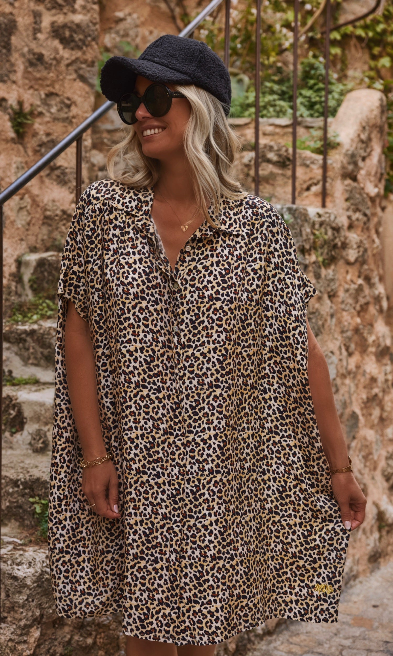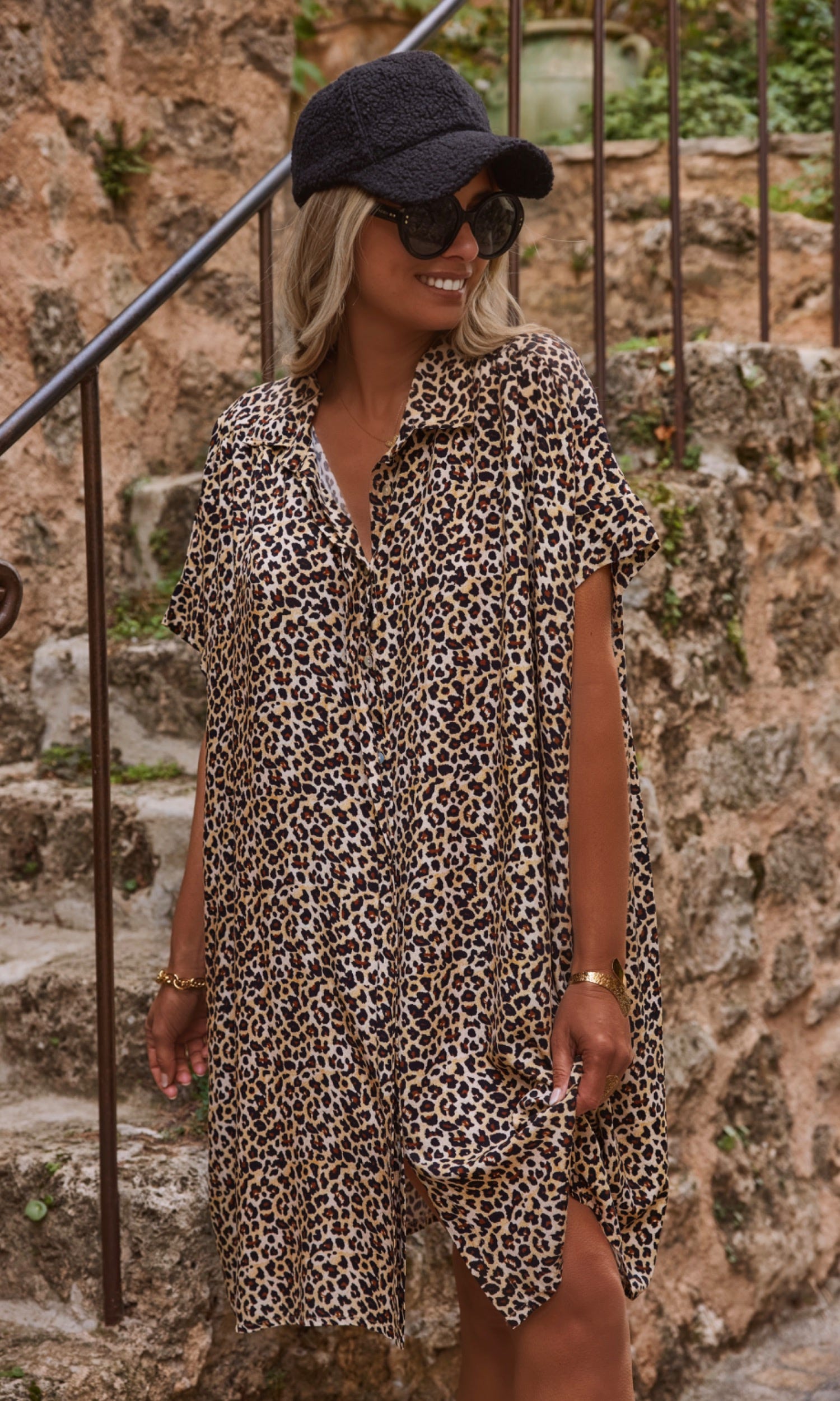 Découvrez cette petite robe camel chemise à la coupe loose et oversize, parfaite pour un look décontracté.