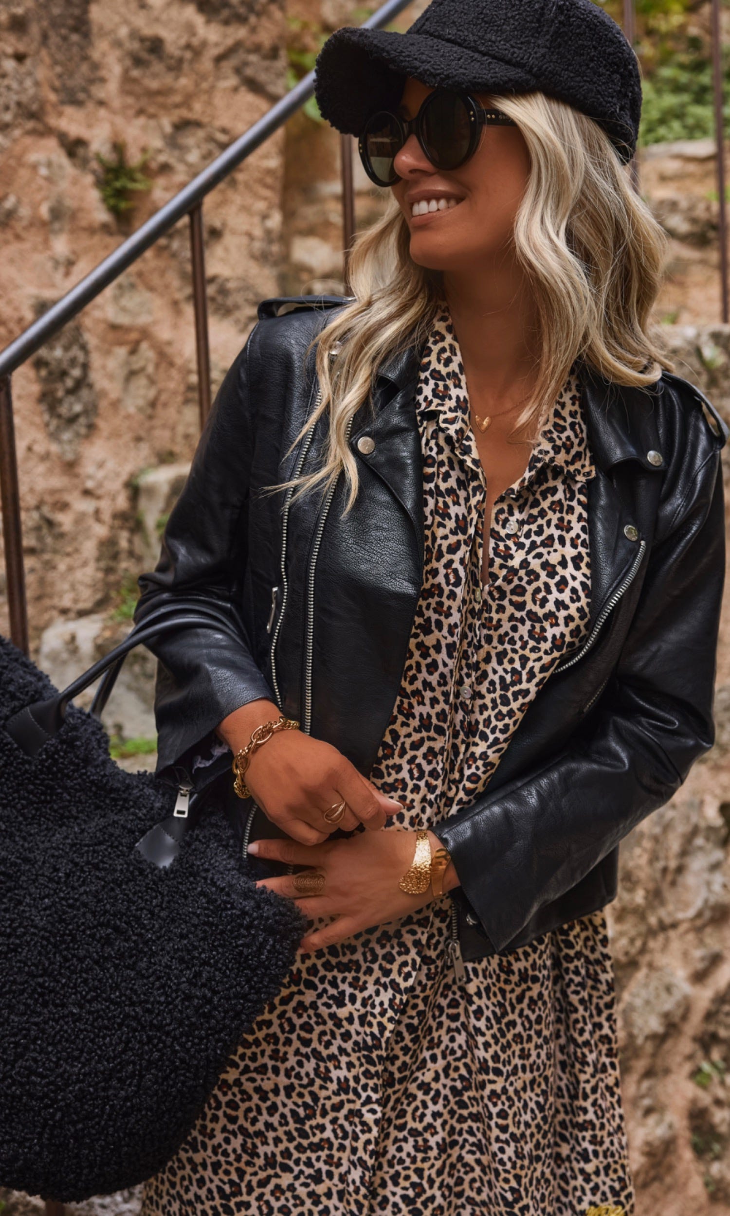 Arborant un motif léopard audacieux, elle se distingue par une broderie MDS sur le devant.