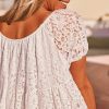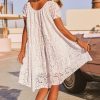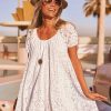 Cette petite robe ultra-loose offre un col arrondi élastiqué et des manches courtes élastiquées.