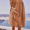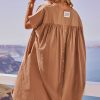 Découvrez notre petite robe chocolat clair oversize en voile de coton avec deux poches discrètes sur les côtés alliant confort et élégance. Son col en V avec un empiècement froncé et ses manches courtes sans emmanchure apportent une touche féminine. Boutonnée dans le dos, elle présente un design audacieux avec un devant plus court et un léger fendu de 4 cm sur les côtés.Une pièce incontournable !