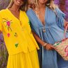 Son col V avec empiècement froncé ajoute une touche d'élégance, tandis que les manches courtes sans emmanchure et ses poches discrètes offrent un style décontracté.