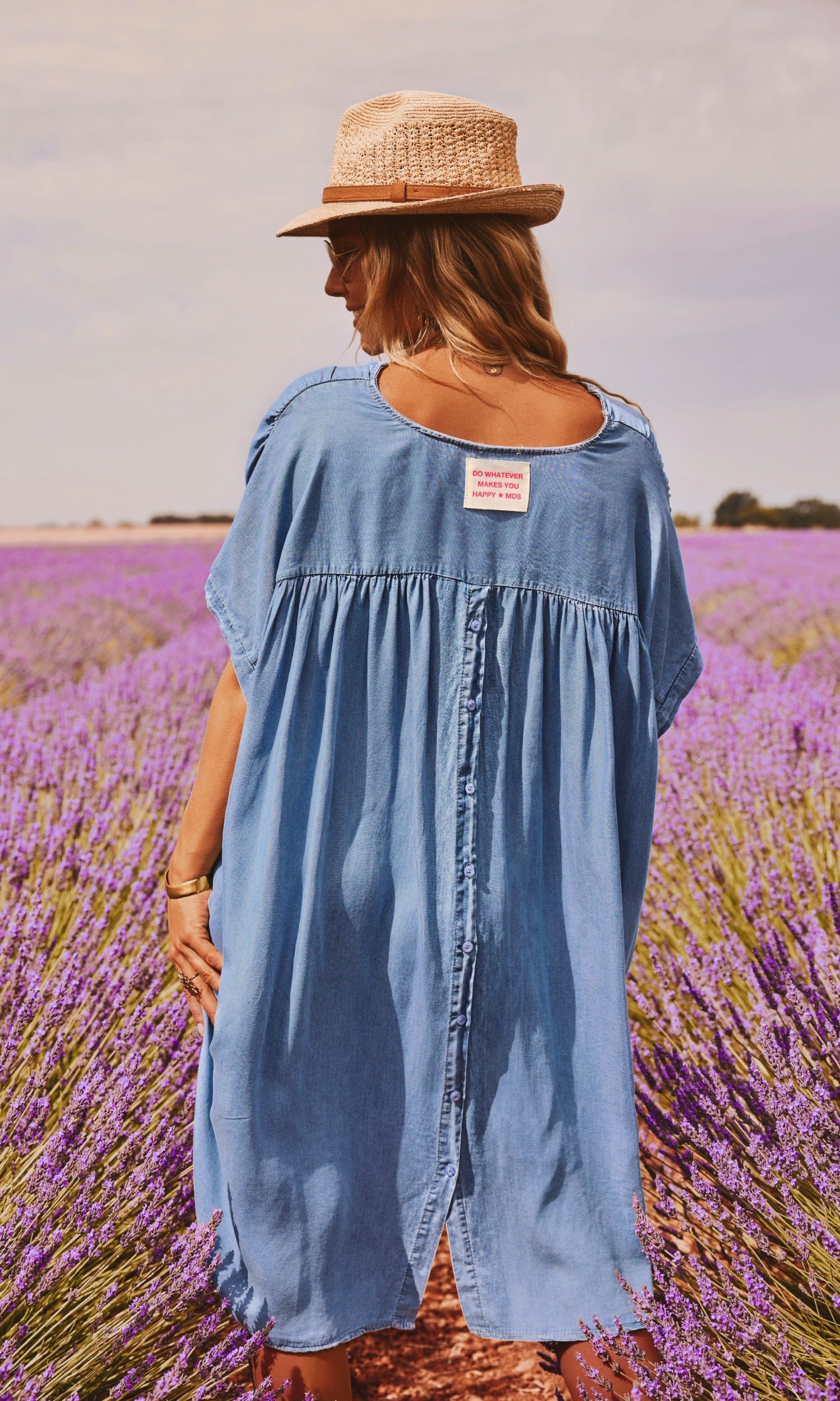 Découvrez notre petite robe en jean's bleach à la coupe oversize.