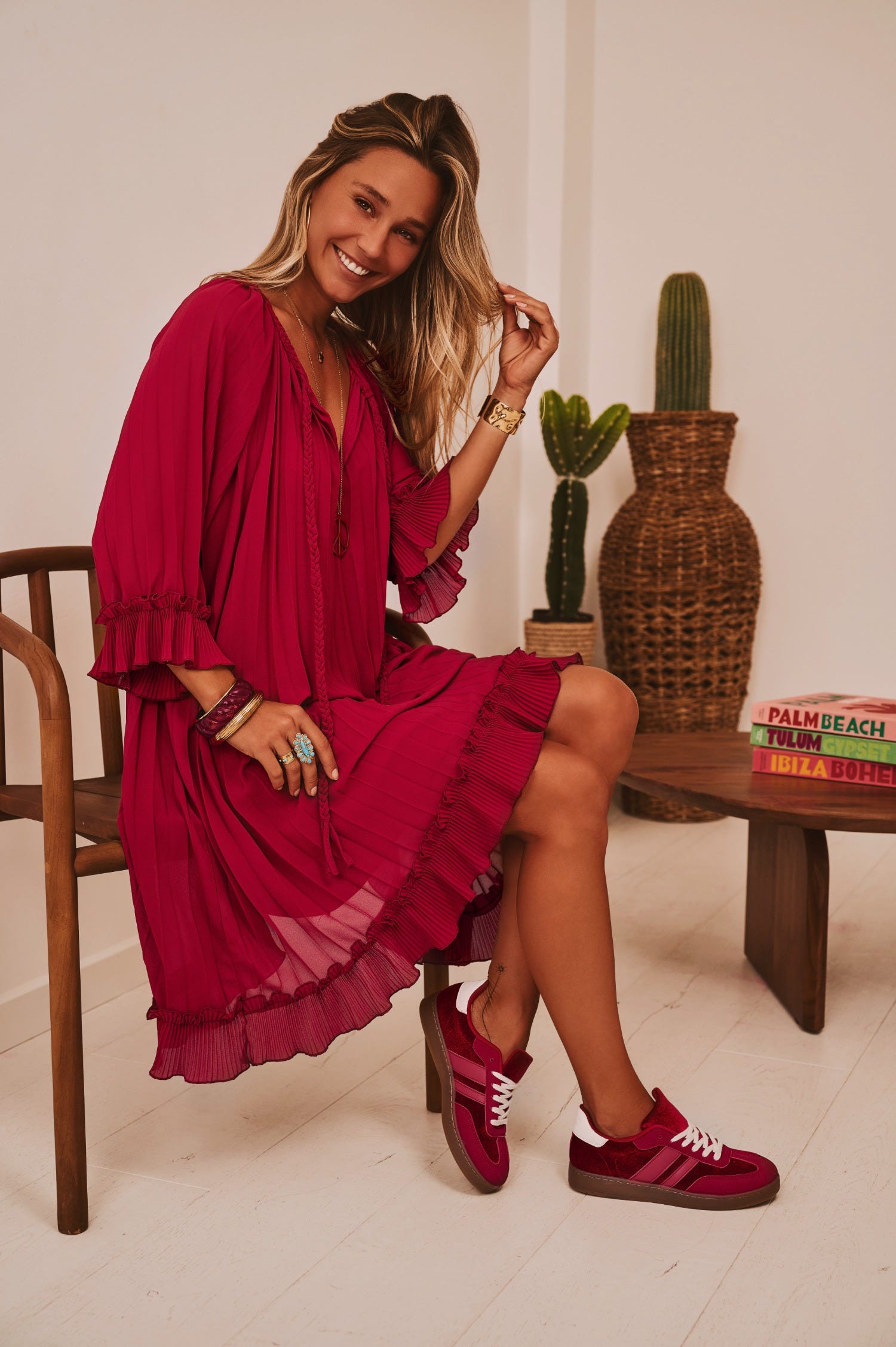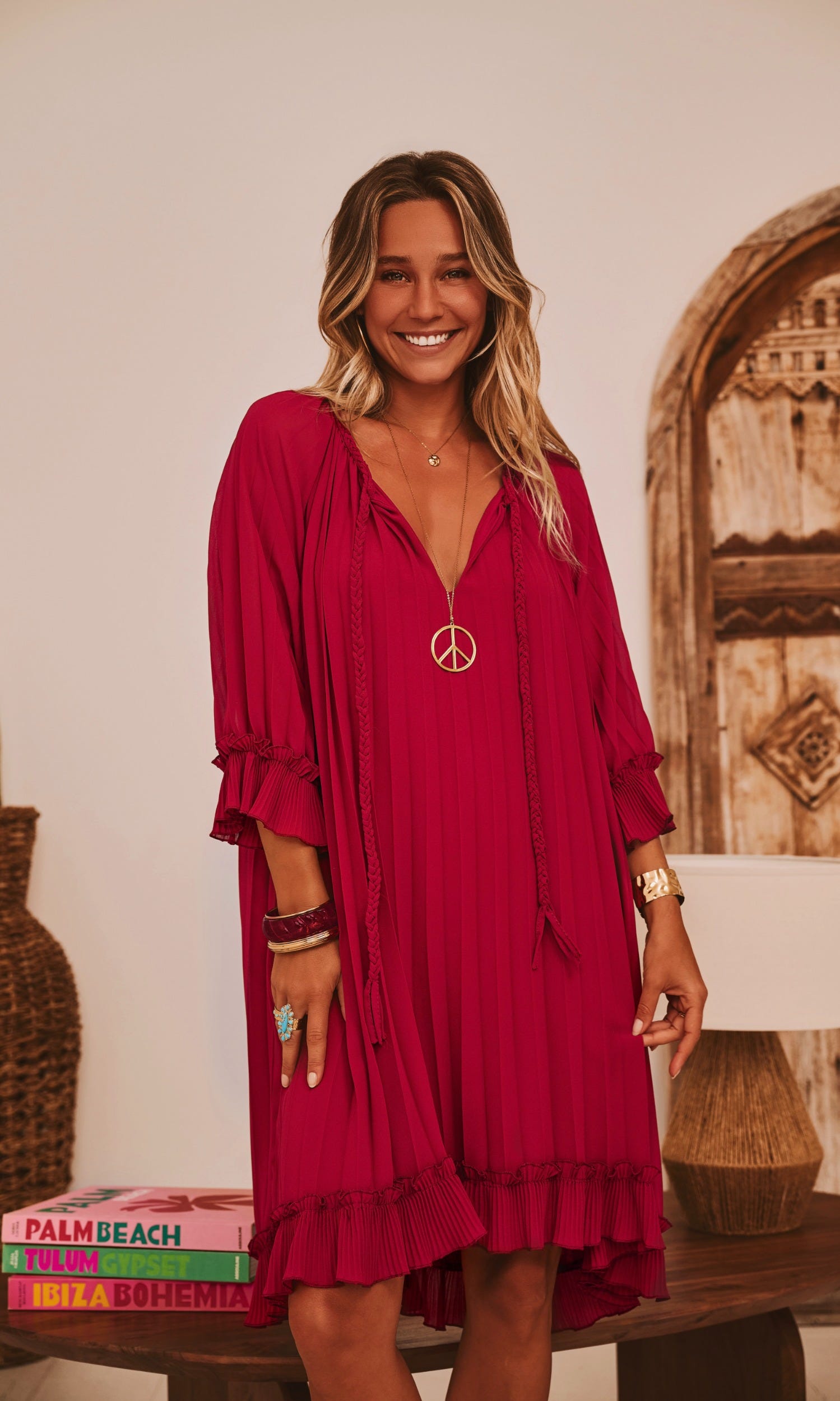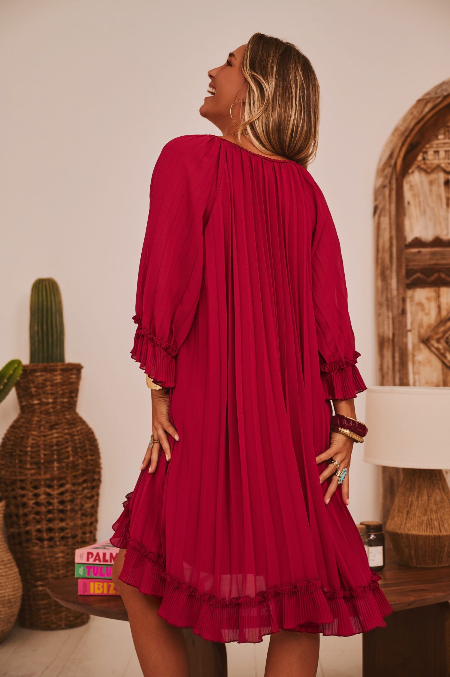 Découvrez notre petite robe bordeaux en voile, élégamment plissée sur l'ensemble.