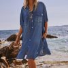 Cette robe coupe droite et loose présente un col chemise et des manches longues fermées par des boutons pression