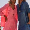 Sa fermeture à boutons pressions et son effet délavé unique ajoutent une touche moderne, tandis que sa base légèrement évasée avec fente de 12 cm sur les côtés offre une allure tendance
