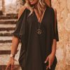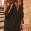Elle arbore un col V généreux à l’avant et au dos, ainsi que des manches courtes chauve-souris avec un fendu sur toute la longueur.