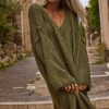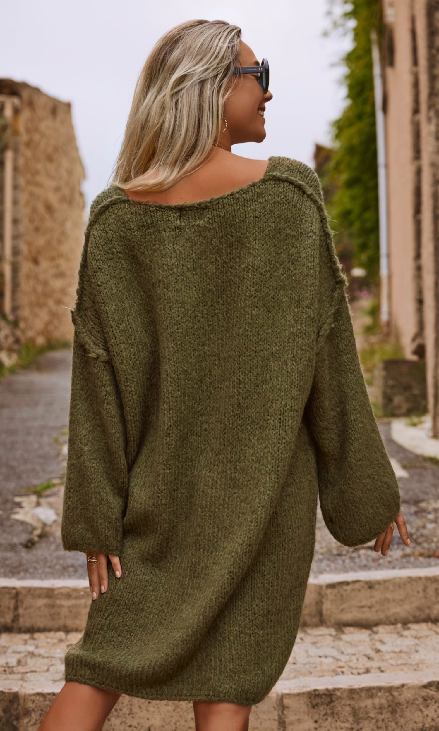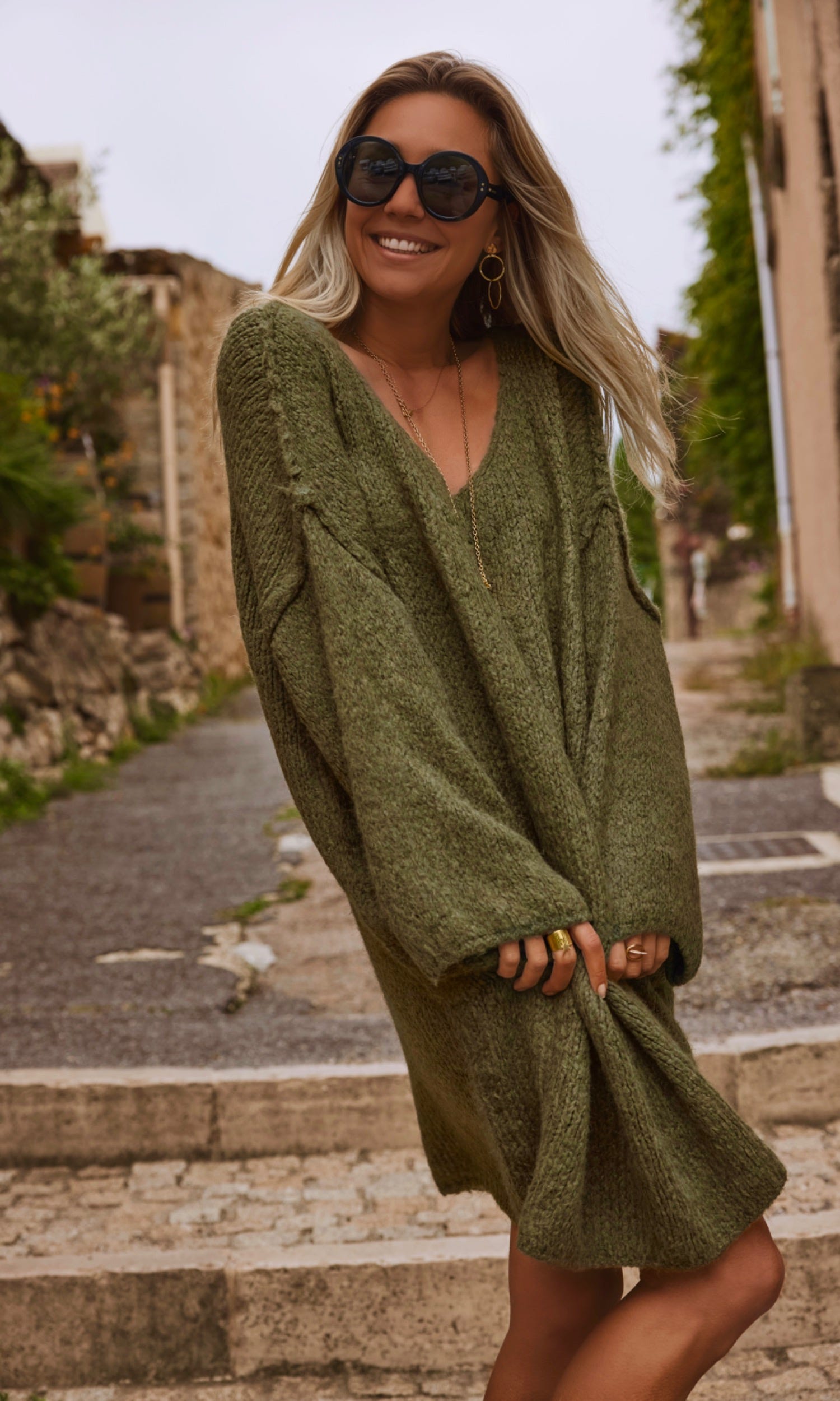 Découvrez cette petite robe pull kaki à la coupe ultra loose et droite, parfaite pour allier confort et style.