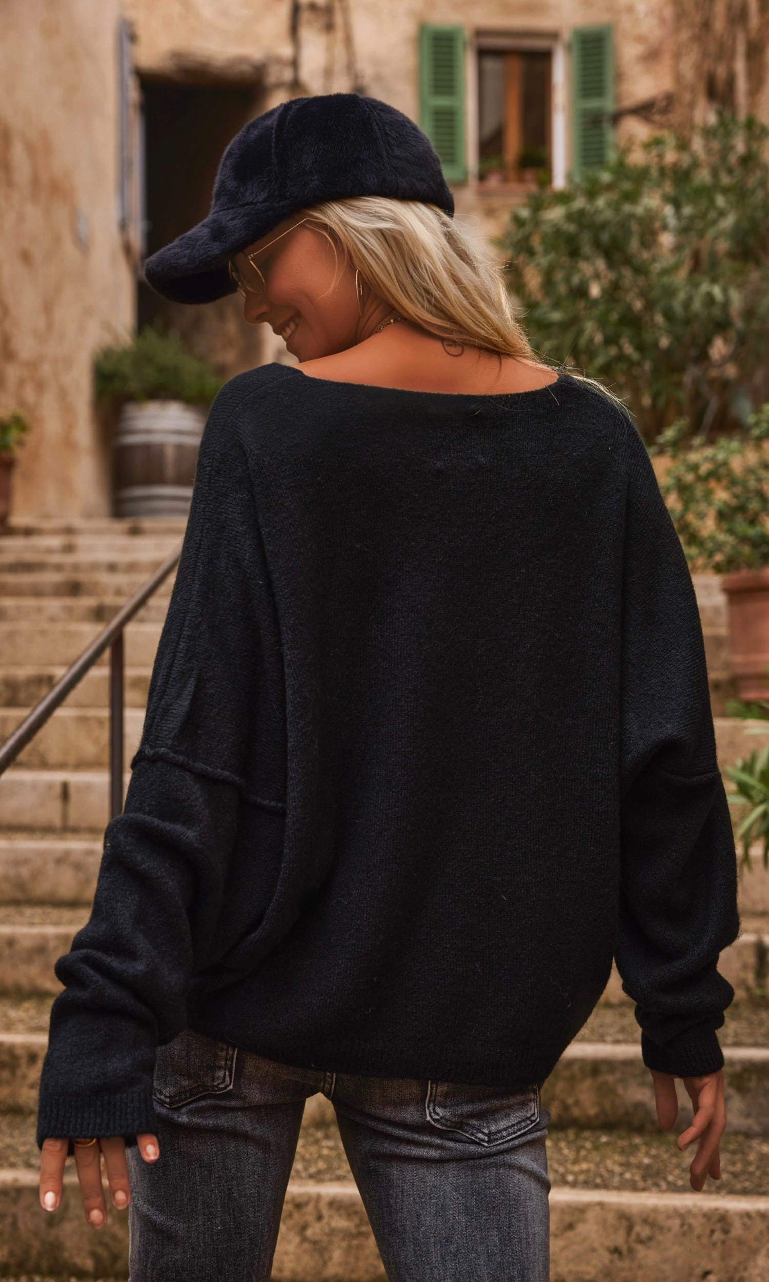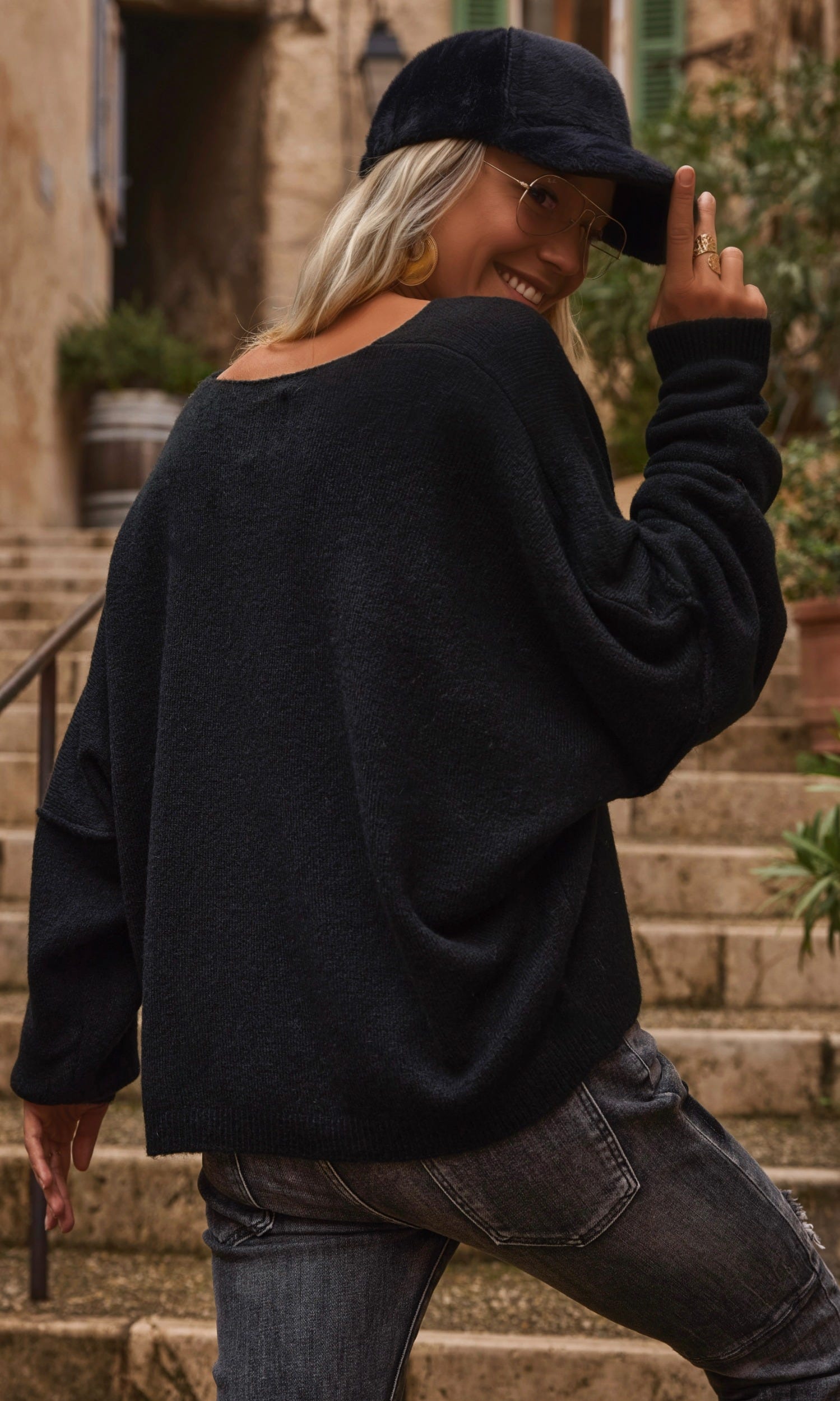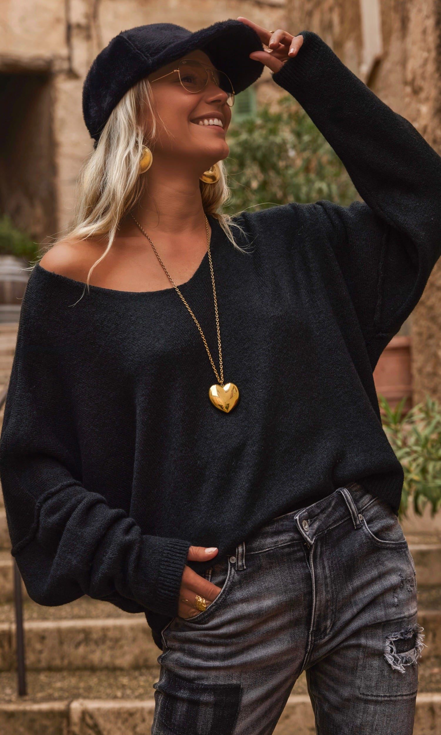 Découvrez notre pull noir ultra loose et oversize, parfait pour un look décontracté.