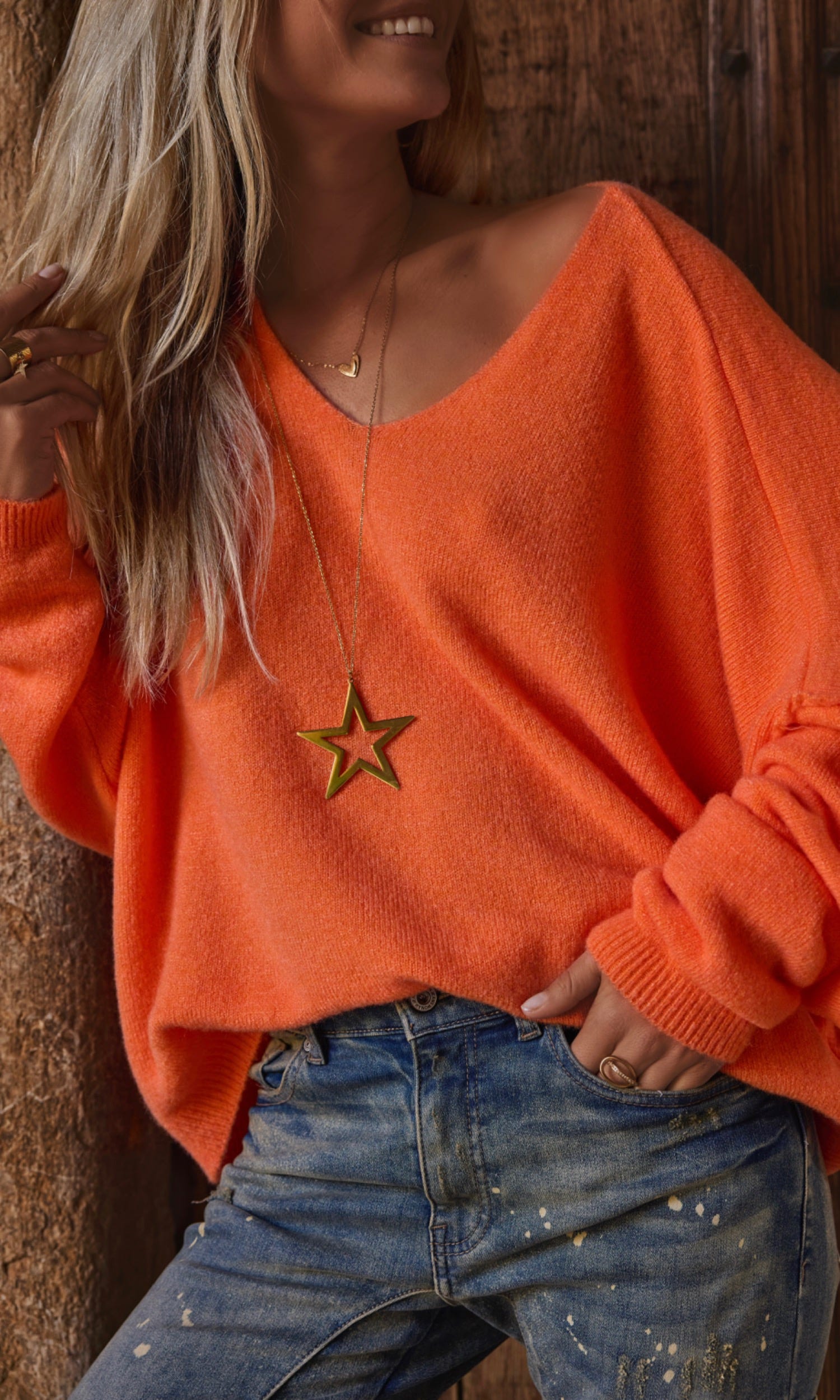 Découvrez ce pull orange vif ultra loose et oversize, parfait pour un style décontracté