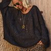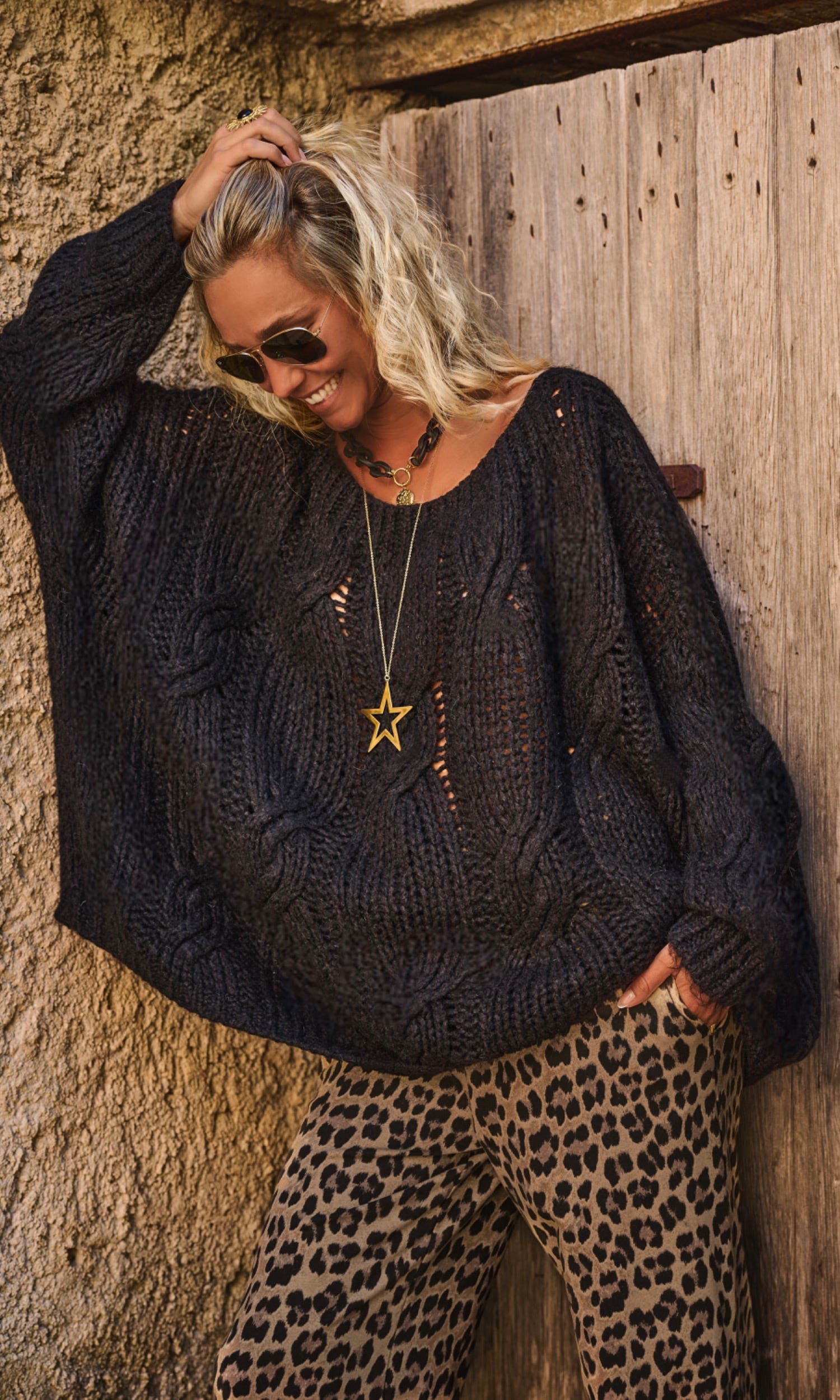 Adoptez un style décontracté avec ce pull noir ultra-loose en grosses mailles ajourées
