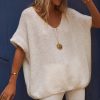 Découvrez notre pull blanc cassé tout doux à la coupe oversize, doté d'un col rond et de manches courtes sans emmanchure.