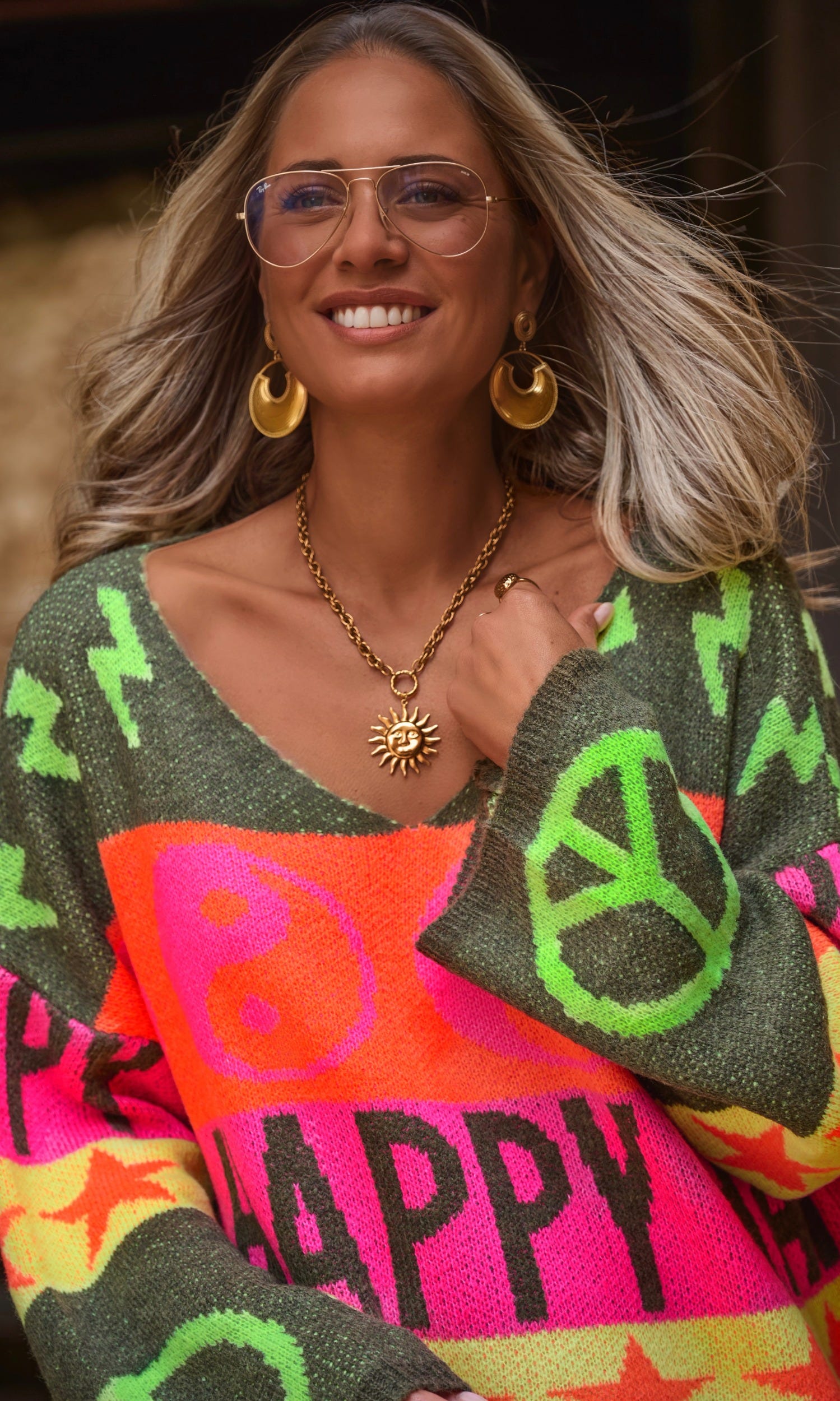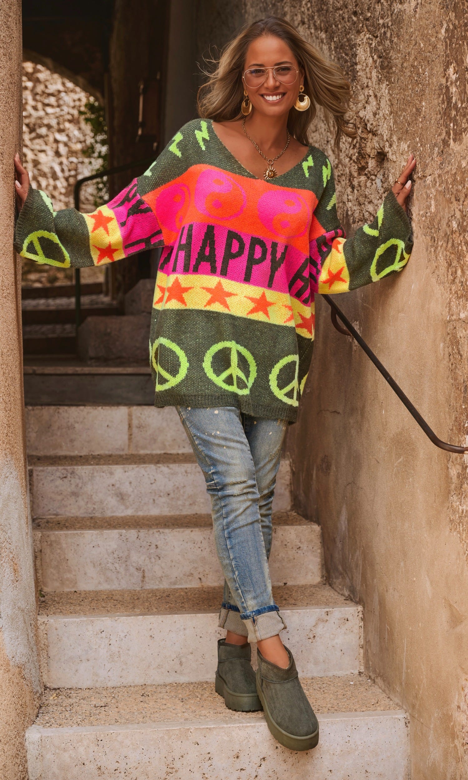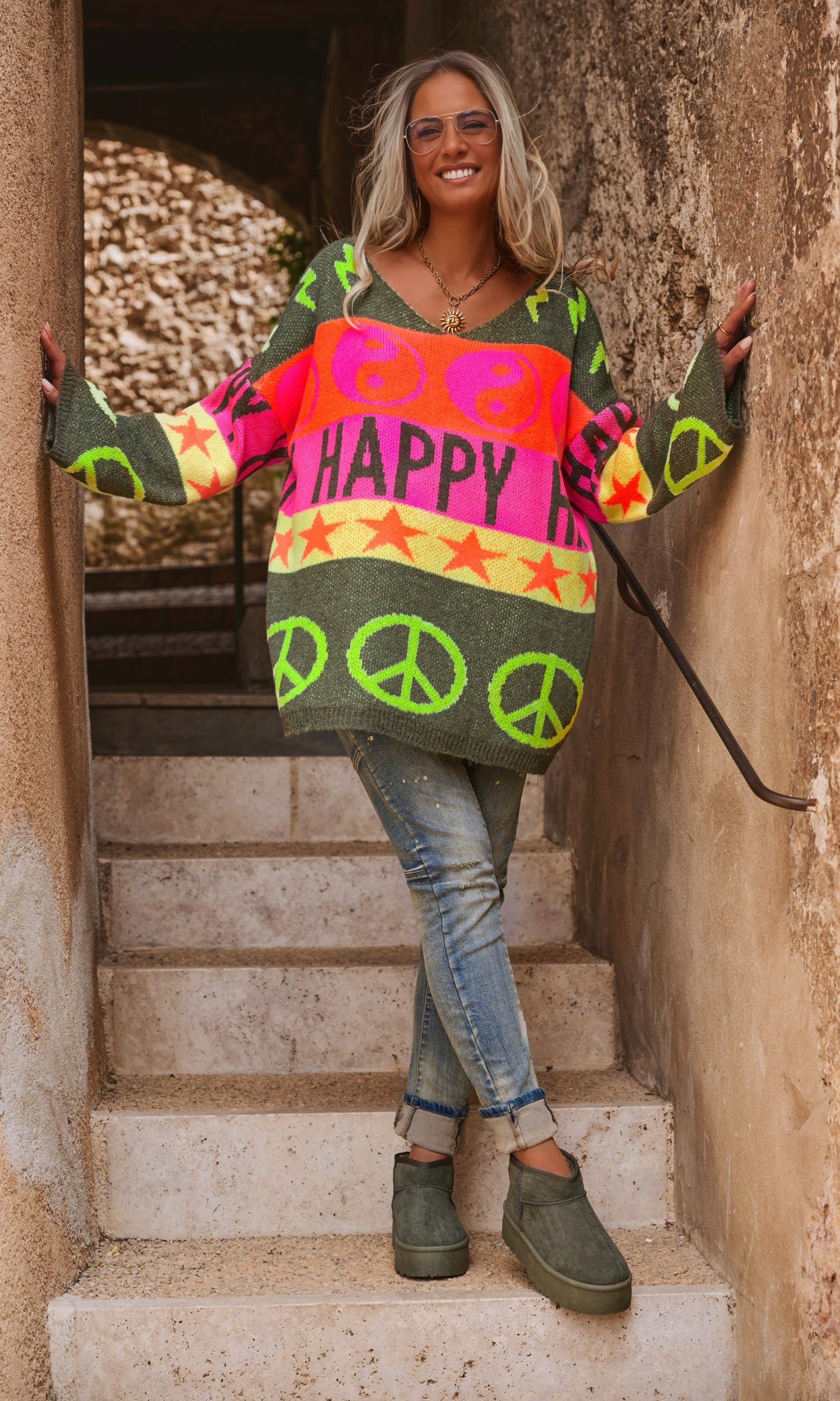 Avec différents motifs colorés et le motif HAPPY, il égayera toutes vos tenues !