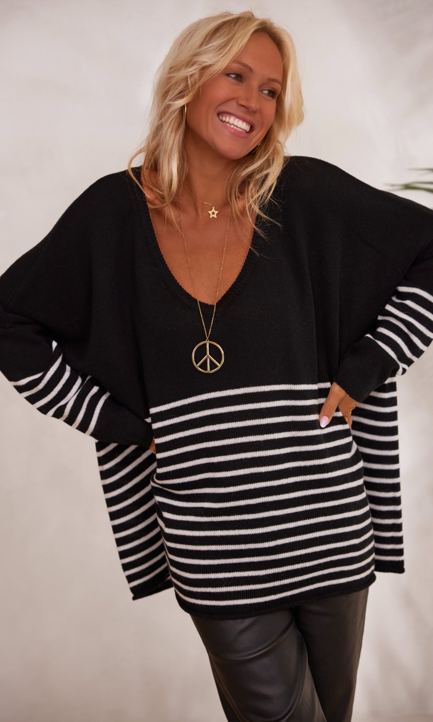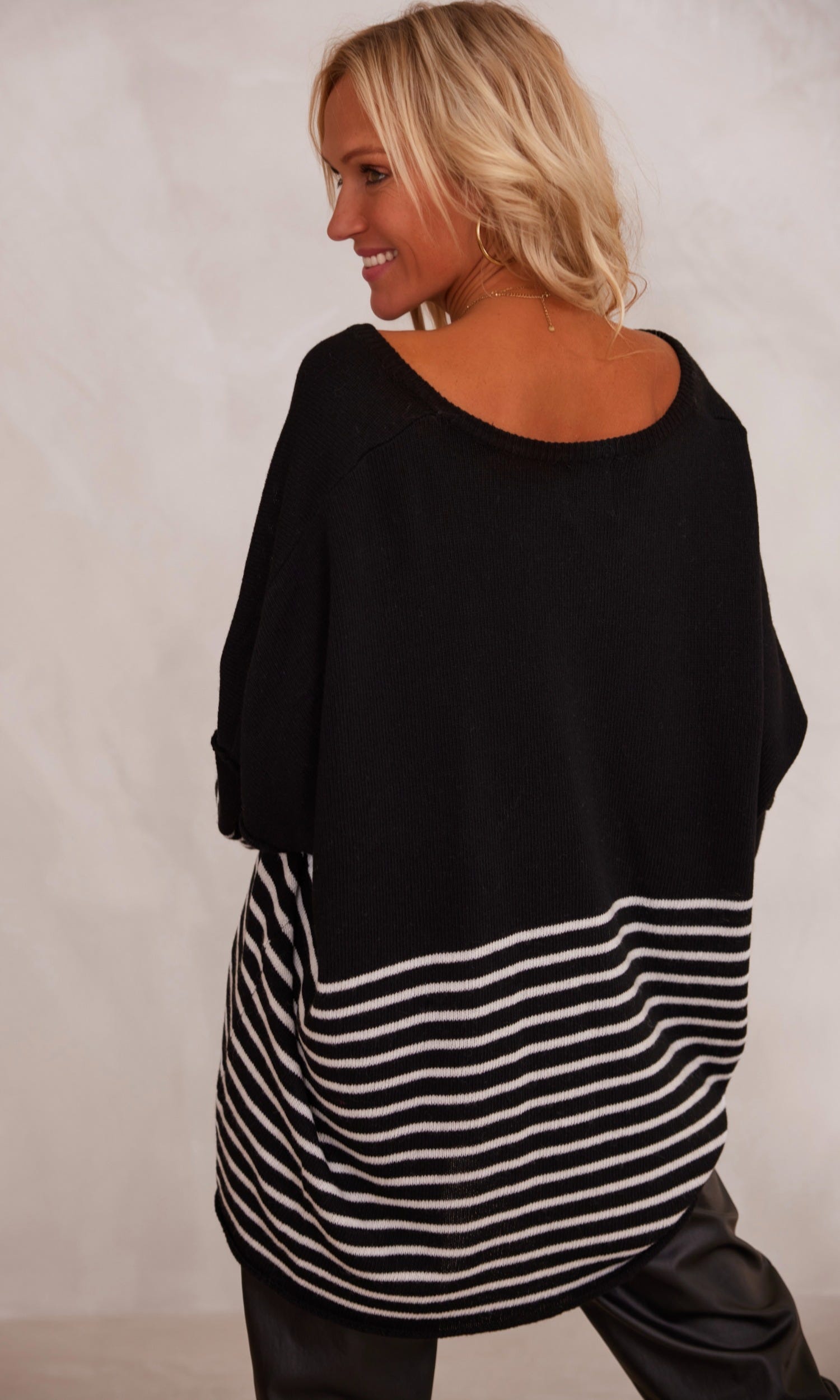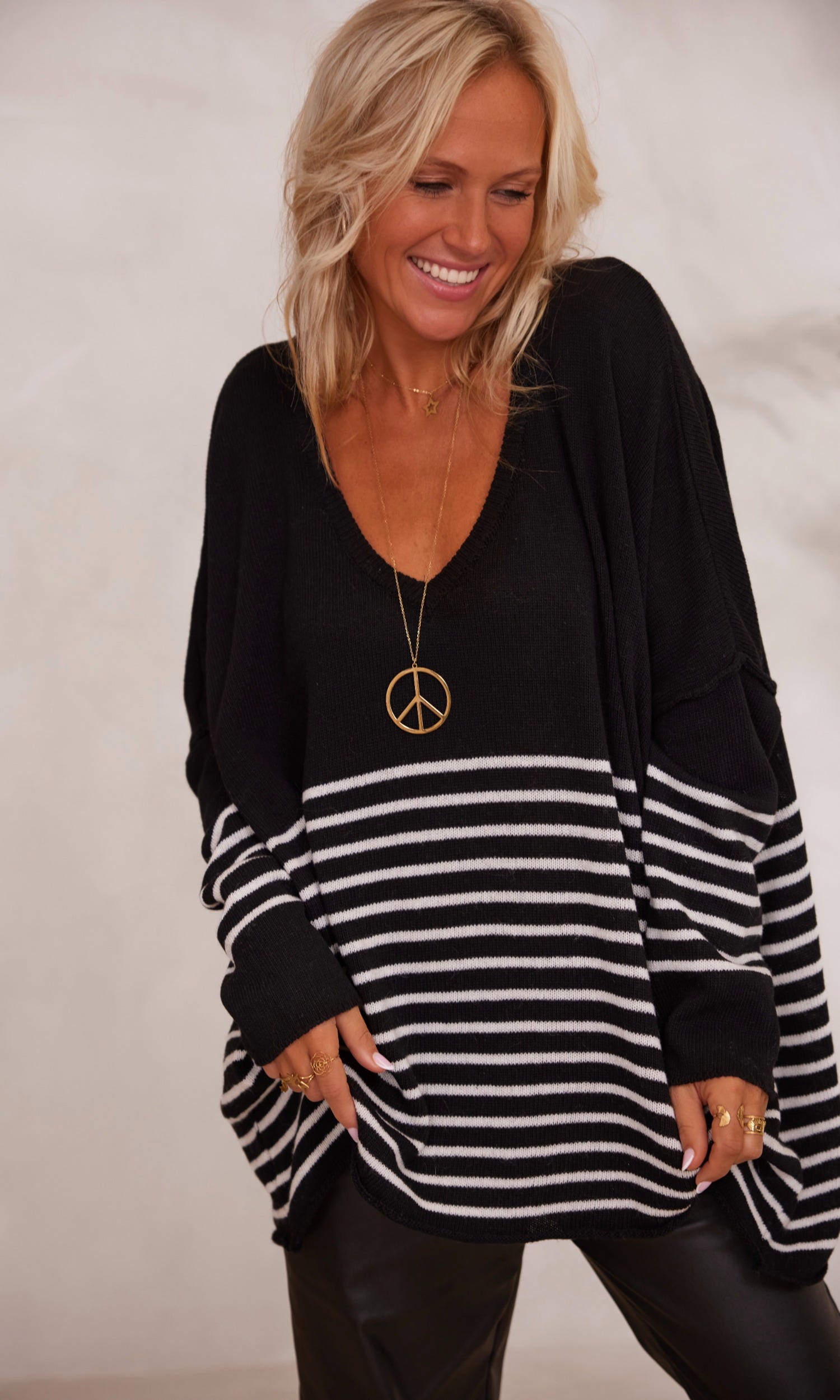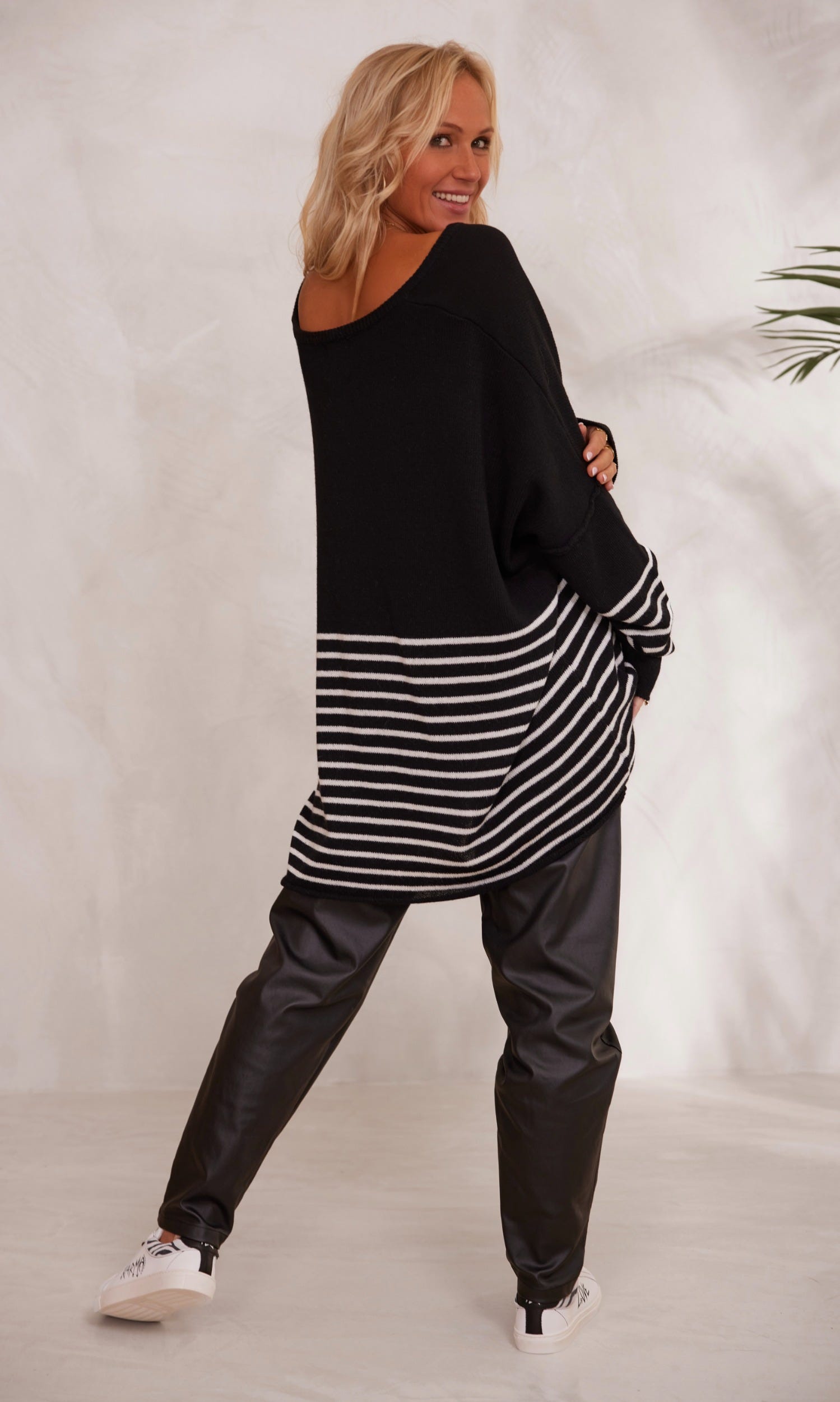 - Bien que nos vêtements ne puissent être portés de la même manière selon votre taille, ce pull à coupe oversize s’accordera aisément à votre silhouette