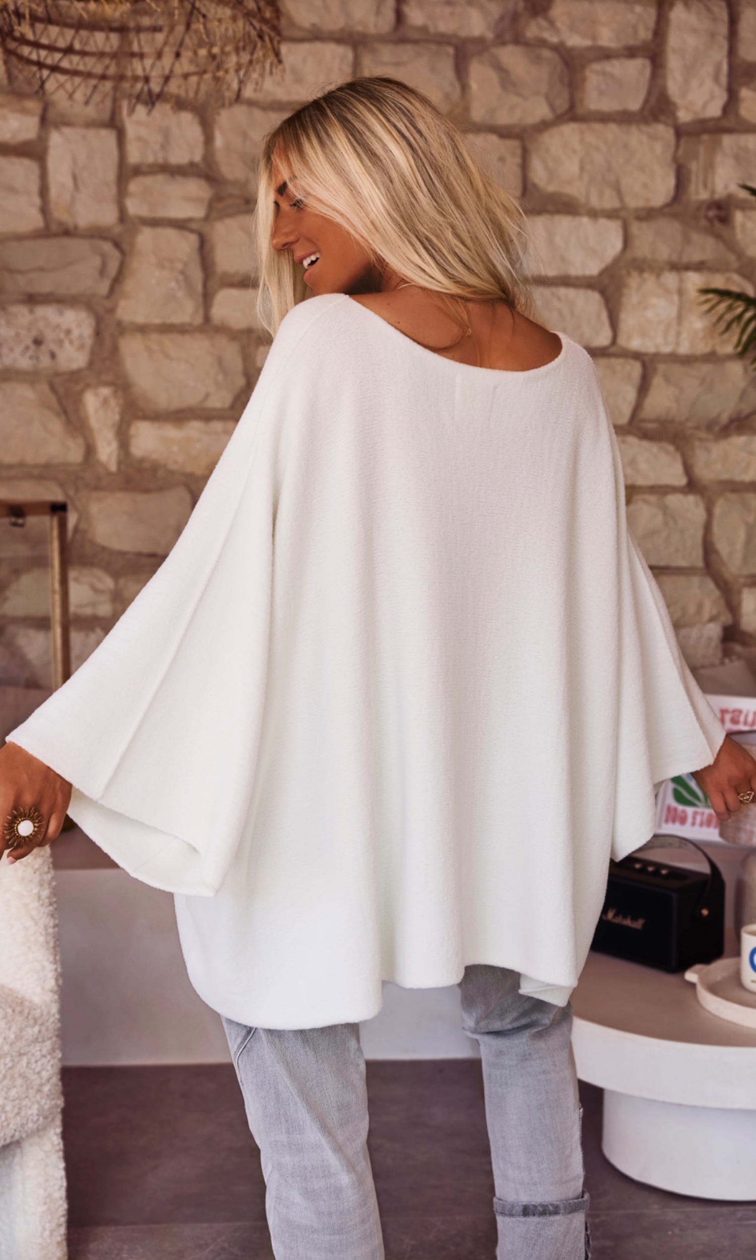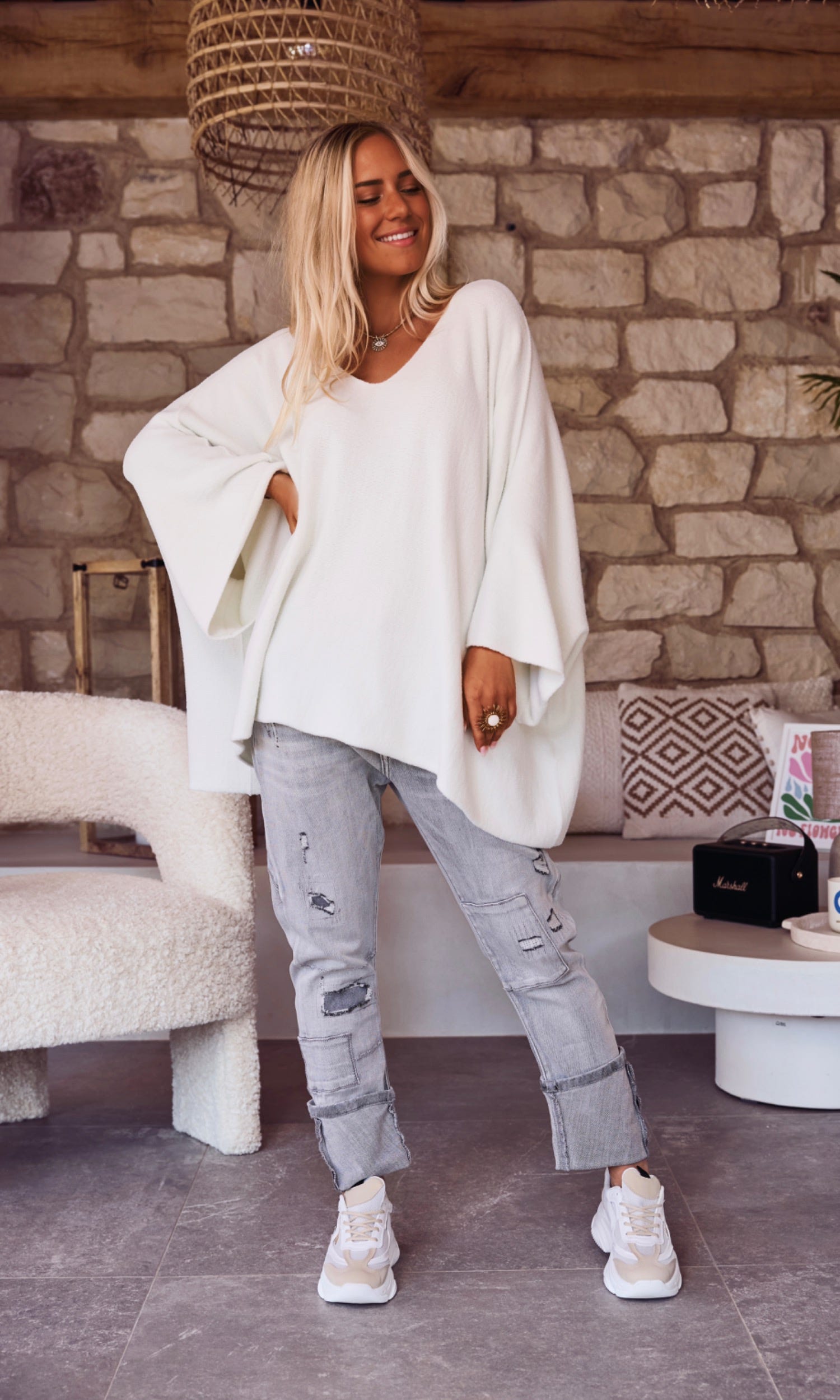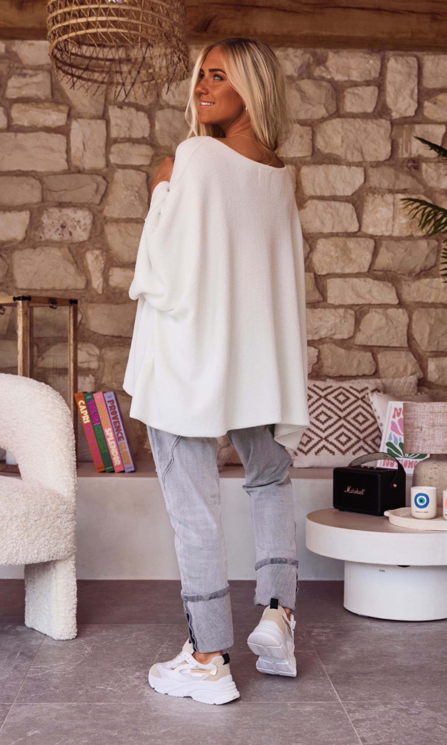 Découvrez notre pull blanc cassé ultra loose et oversize, conçu pour un confort absolu