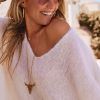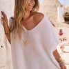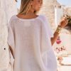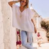 Ses petites mailles et son col V arrondi apportent une touche délicate, tandis que les manches courtes et le léger effet de transparence ajoutent une note estivale.