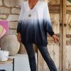 Son col V et ses manches longues avec emmanchures descendantes ajoutent une touche moderne, tandis que les bords côtelés des manches et du bas soulignent son élégance