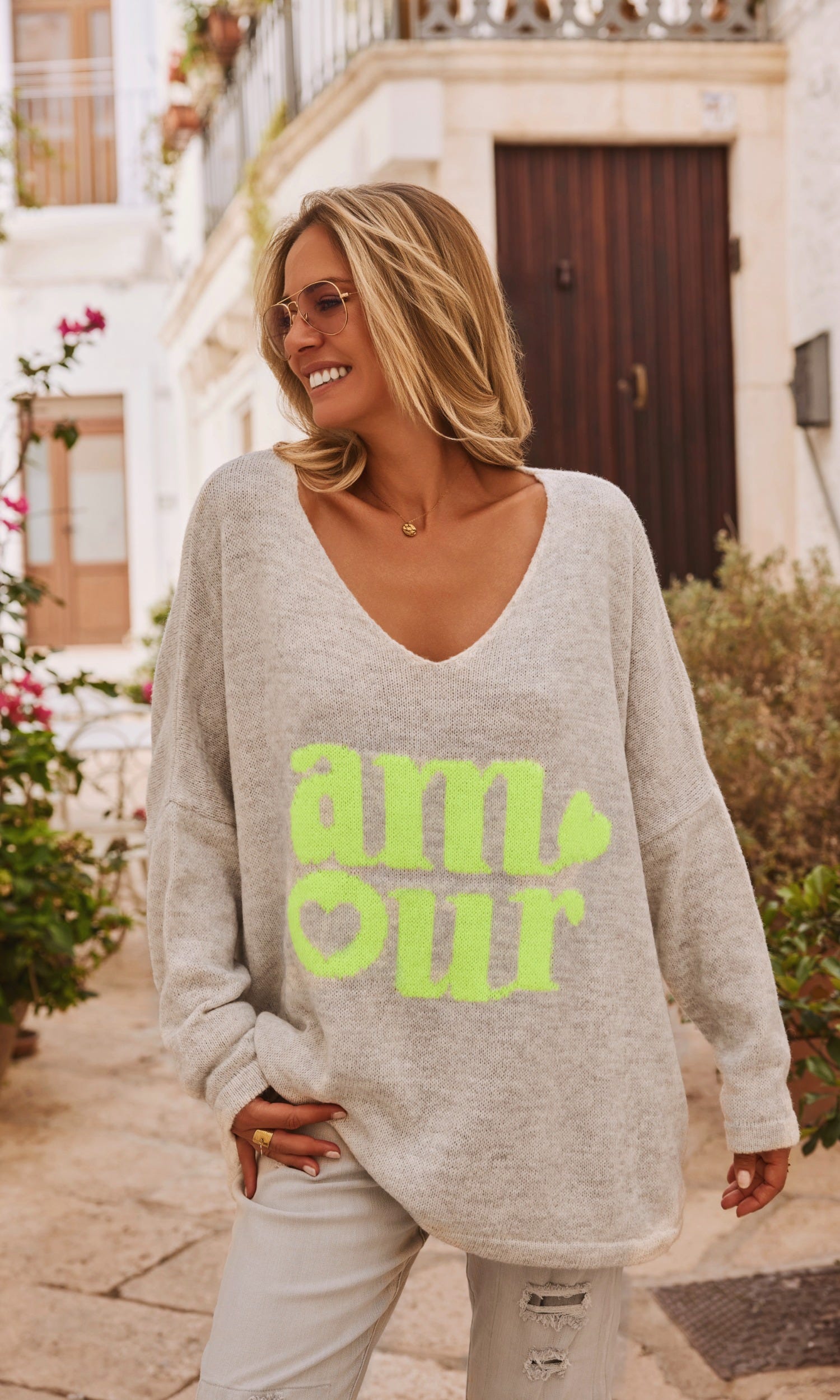 Sublimé par un message "Amour" en jaune fluo sur le devant, ce vêtement tendance saura apporter une touche pétillante à toutes vos tenues.