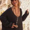 Son col V et ses manches longues à emmanchures tombantes assurent une silhouette moderne.