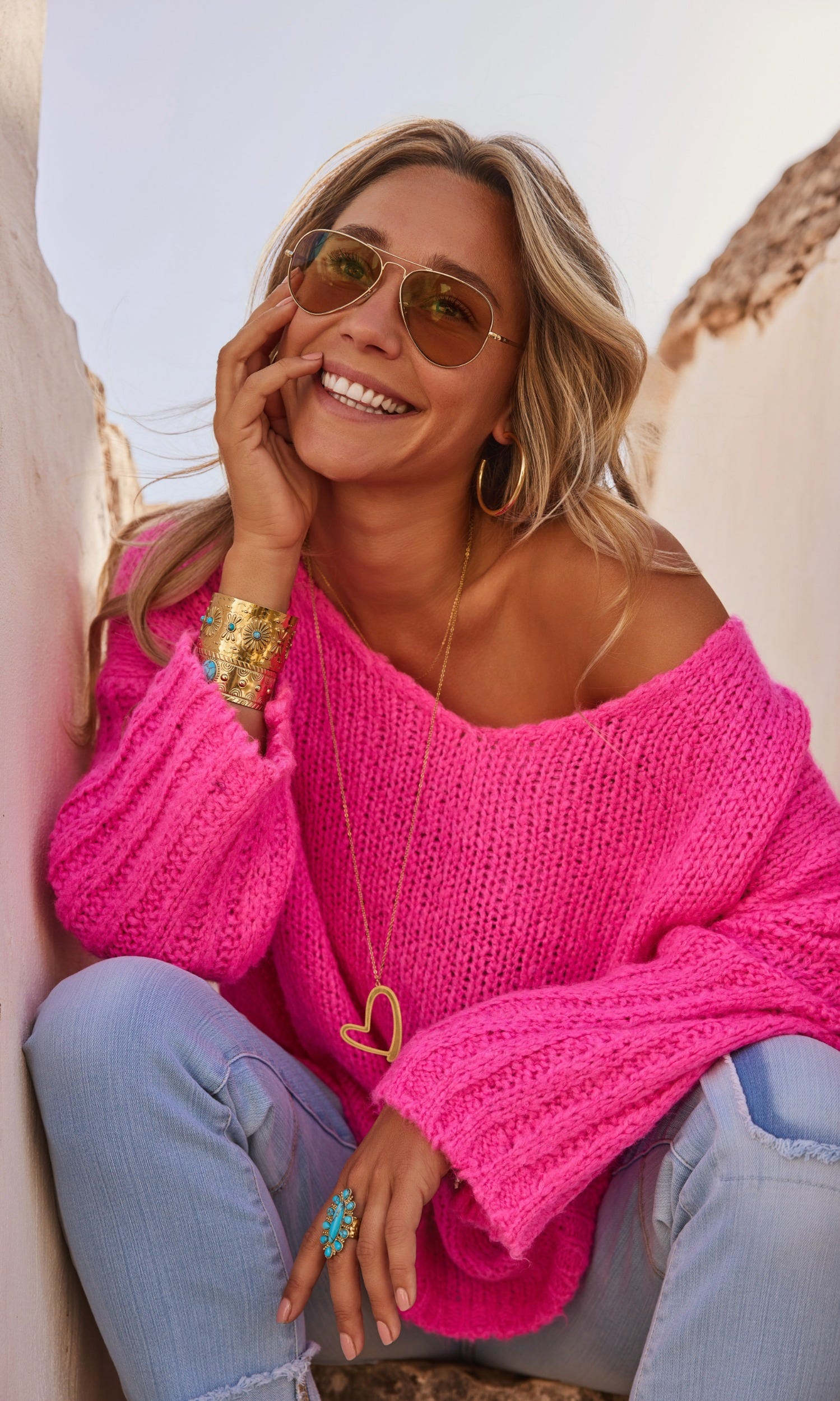 Optez pour un style décontracté avec ce pull oversize rose fluo.
