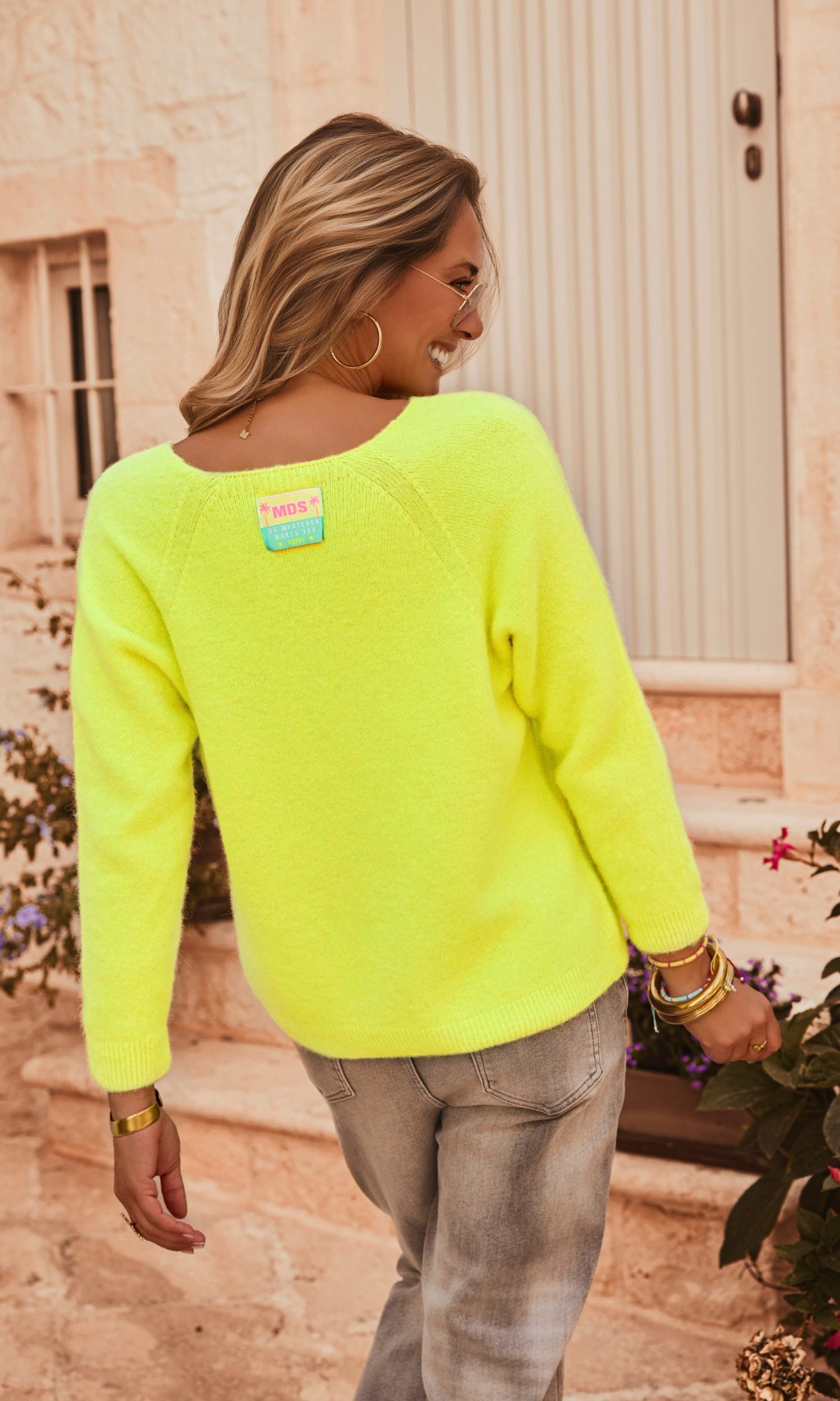 Découvrez ce pull jaune à la coupe loose, parfait pour un look décontracté.