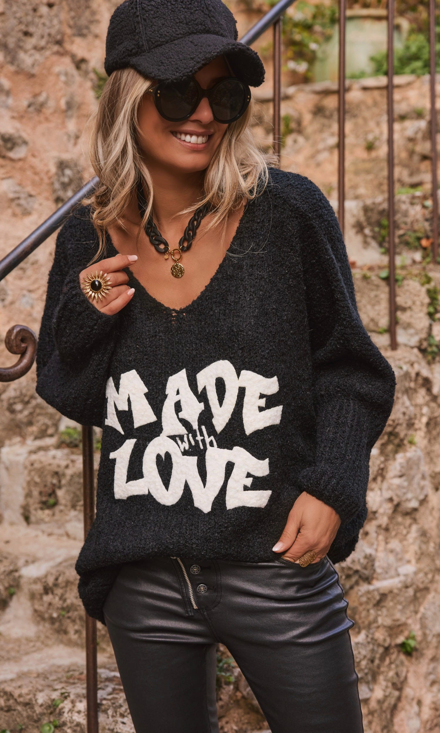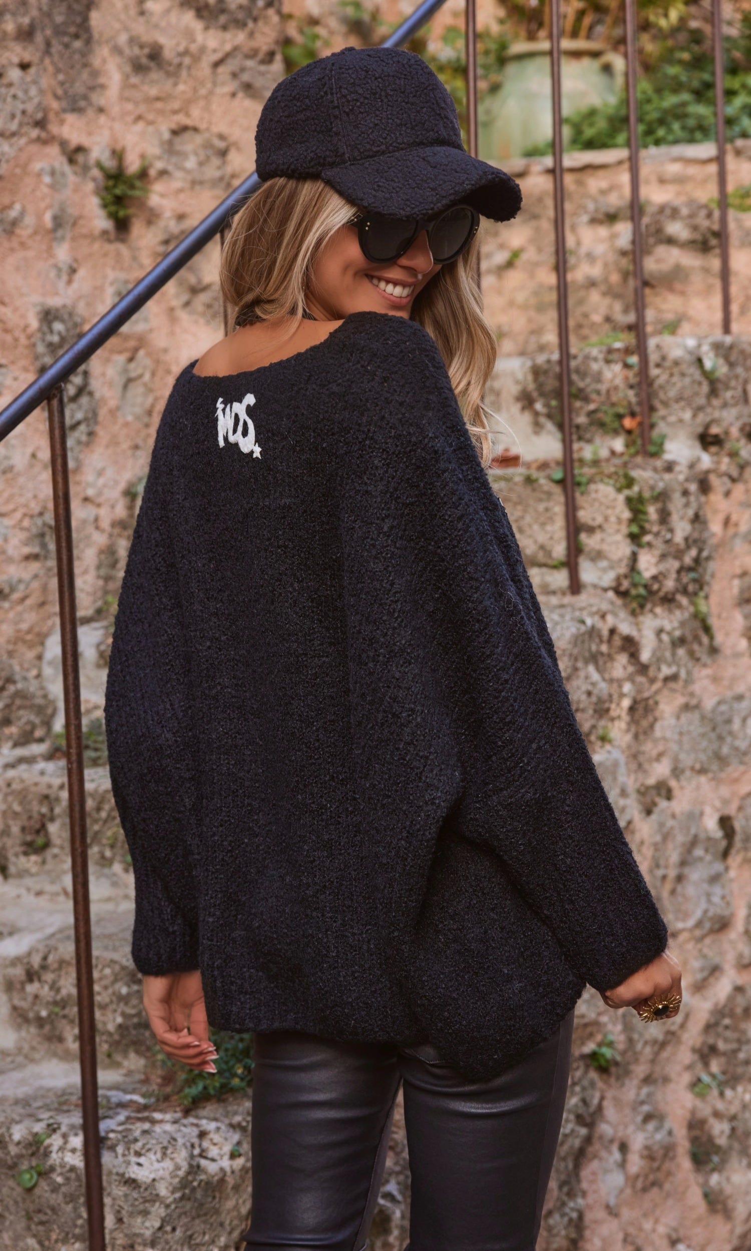 Découvrez notre pull noir ultra loose et oversize, parfait pour un style décontracté !