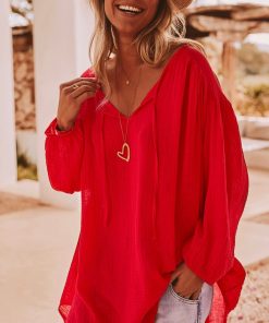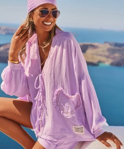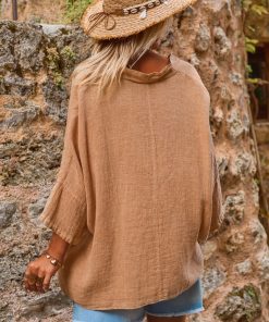 Dotée d’un col rond à l’avant et d’un col V à l’arrière, elle arbore des manches courtes et une poche discrète de chaque côté.