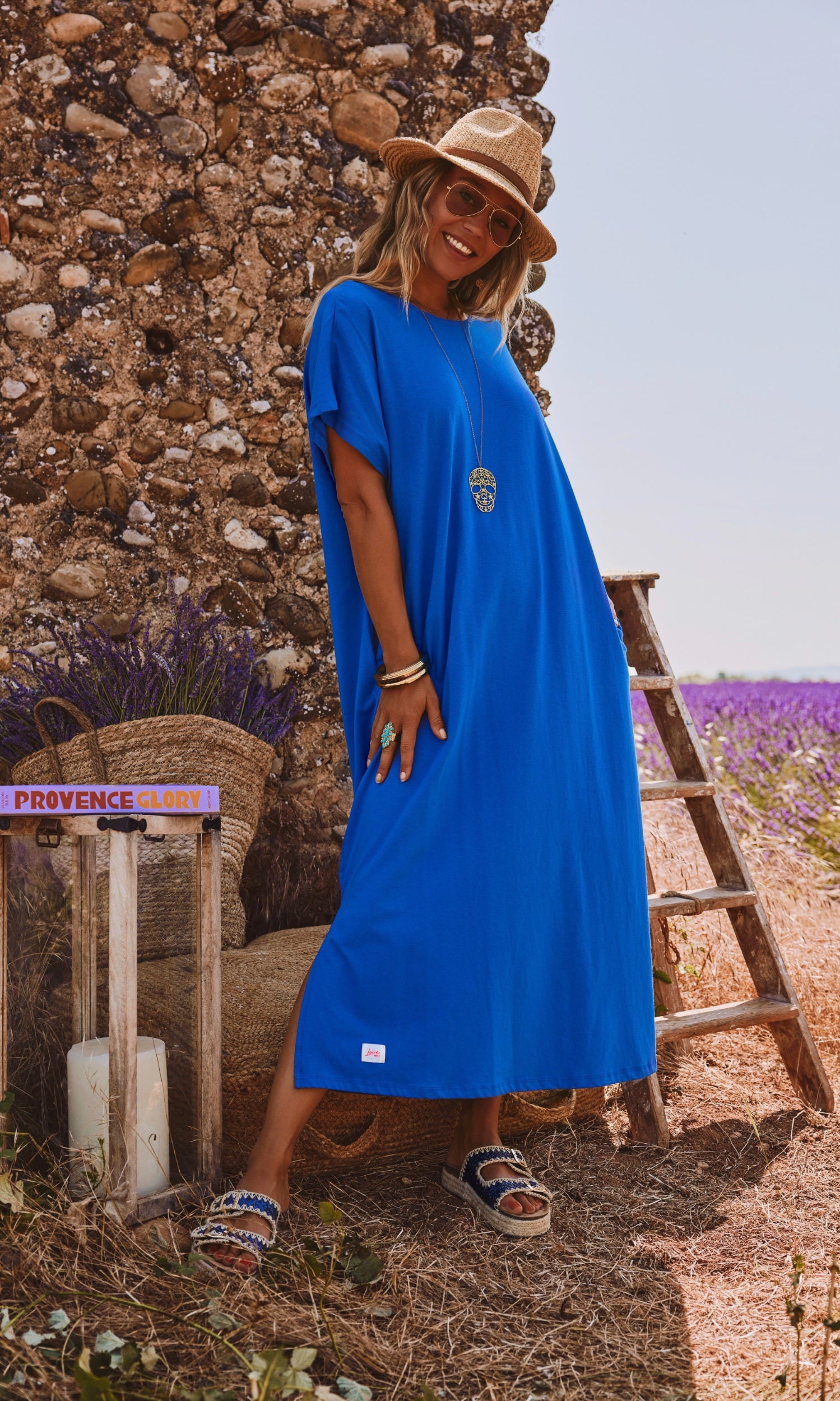 Découvrez notre robe bleu électrique à la coupe loose, parfait pour un look tendance et décontracté.