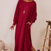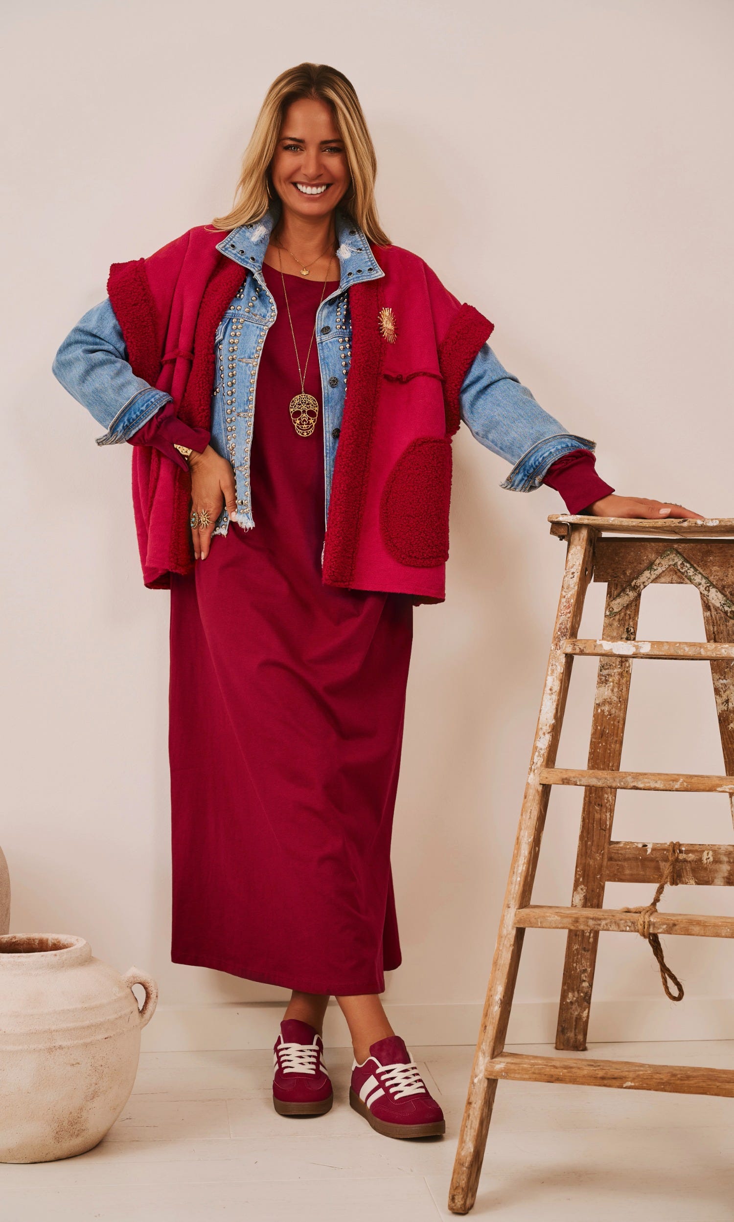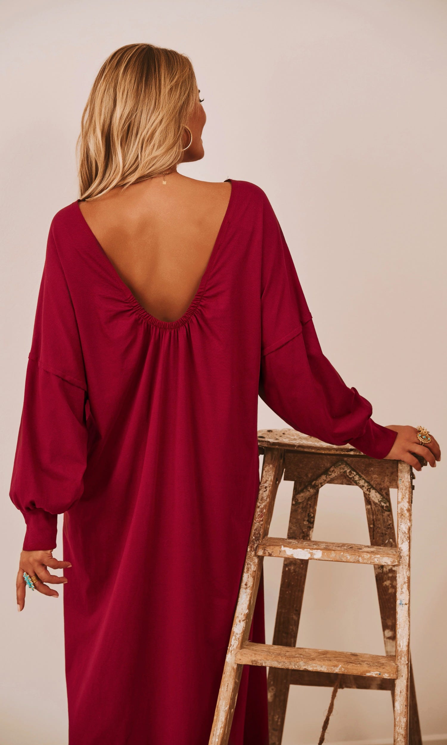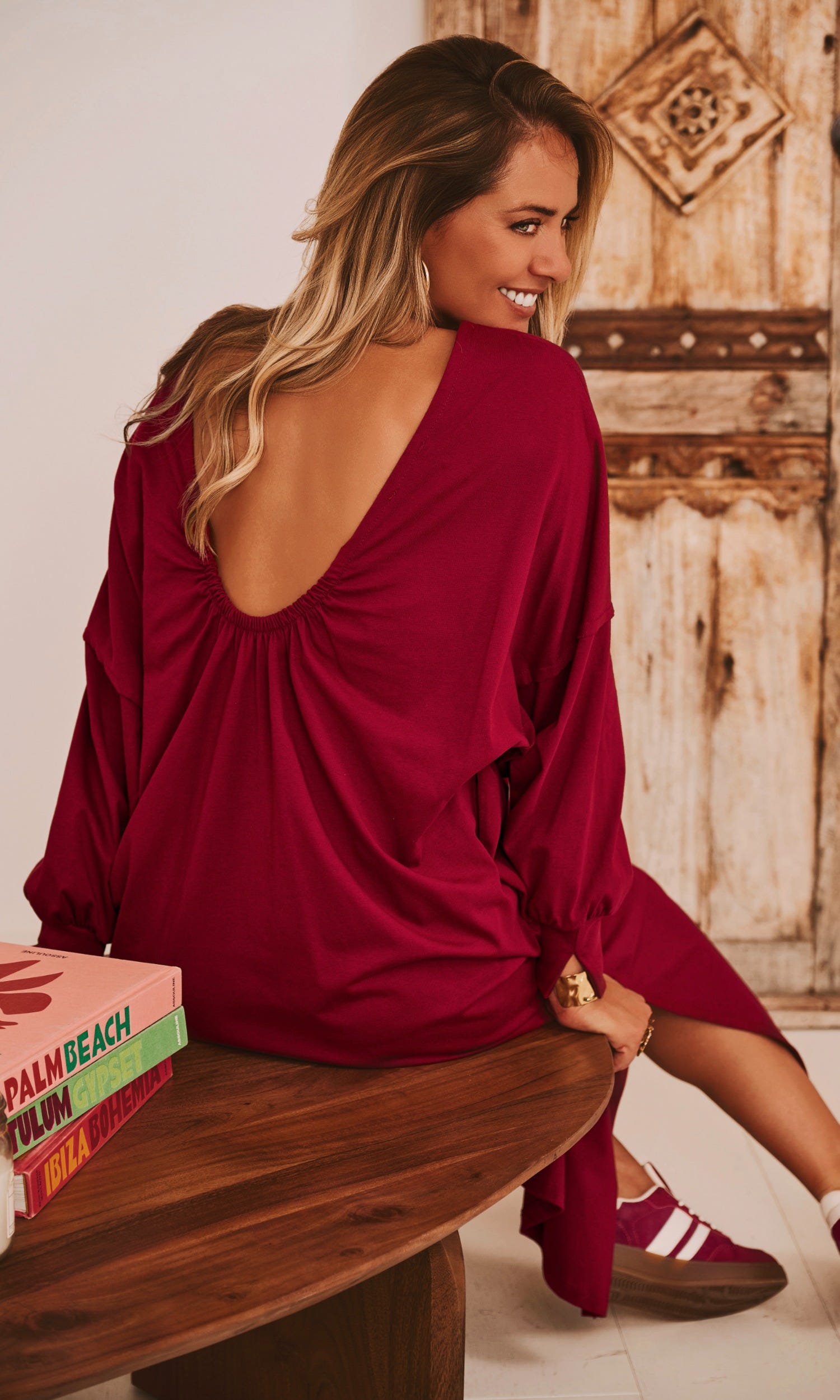 Découvrez notre robe bordeaux à la coupe loose, idéale pour allier confort et élégance.