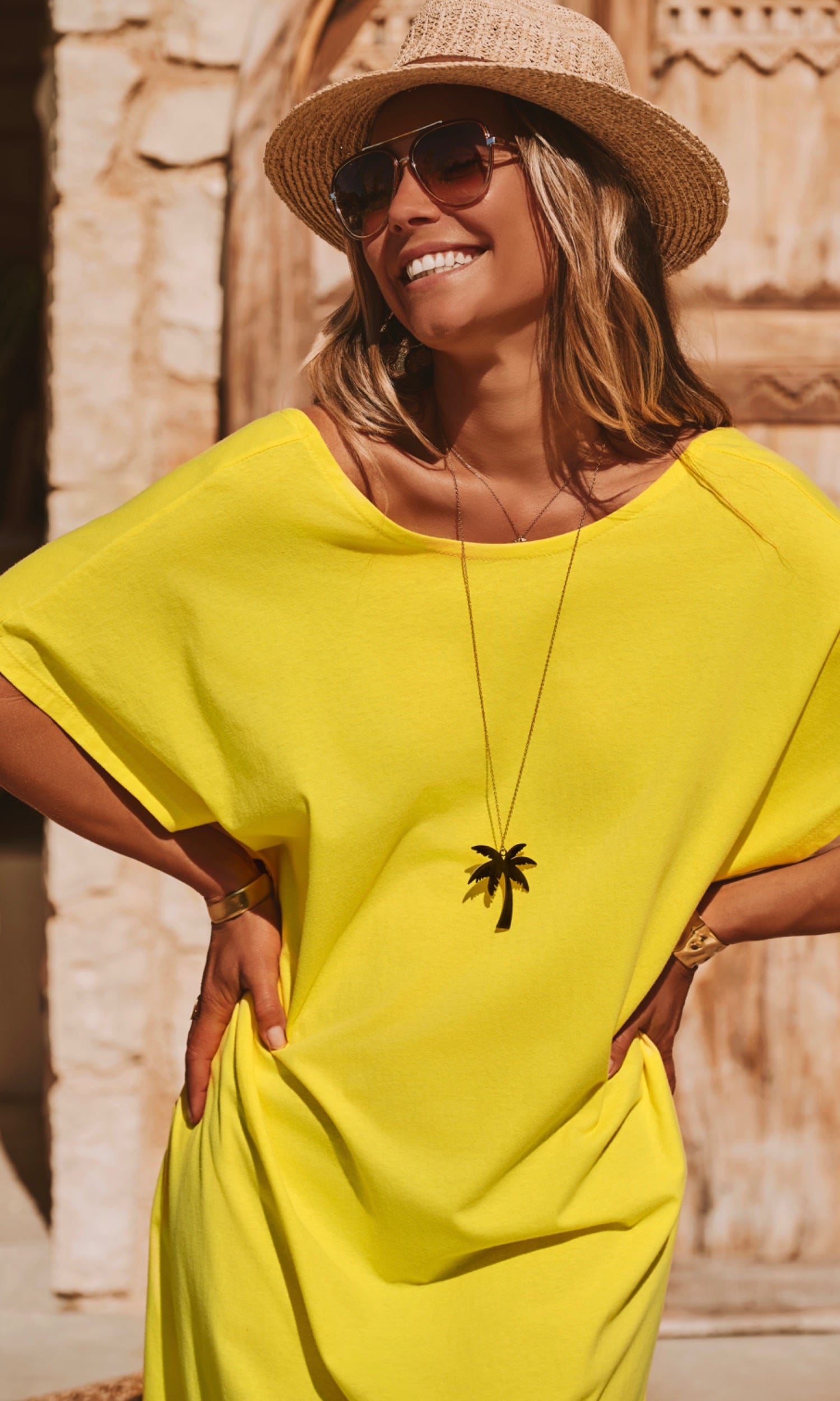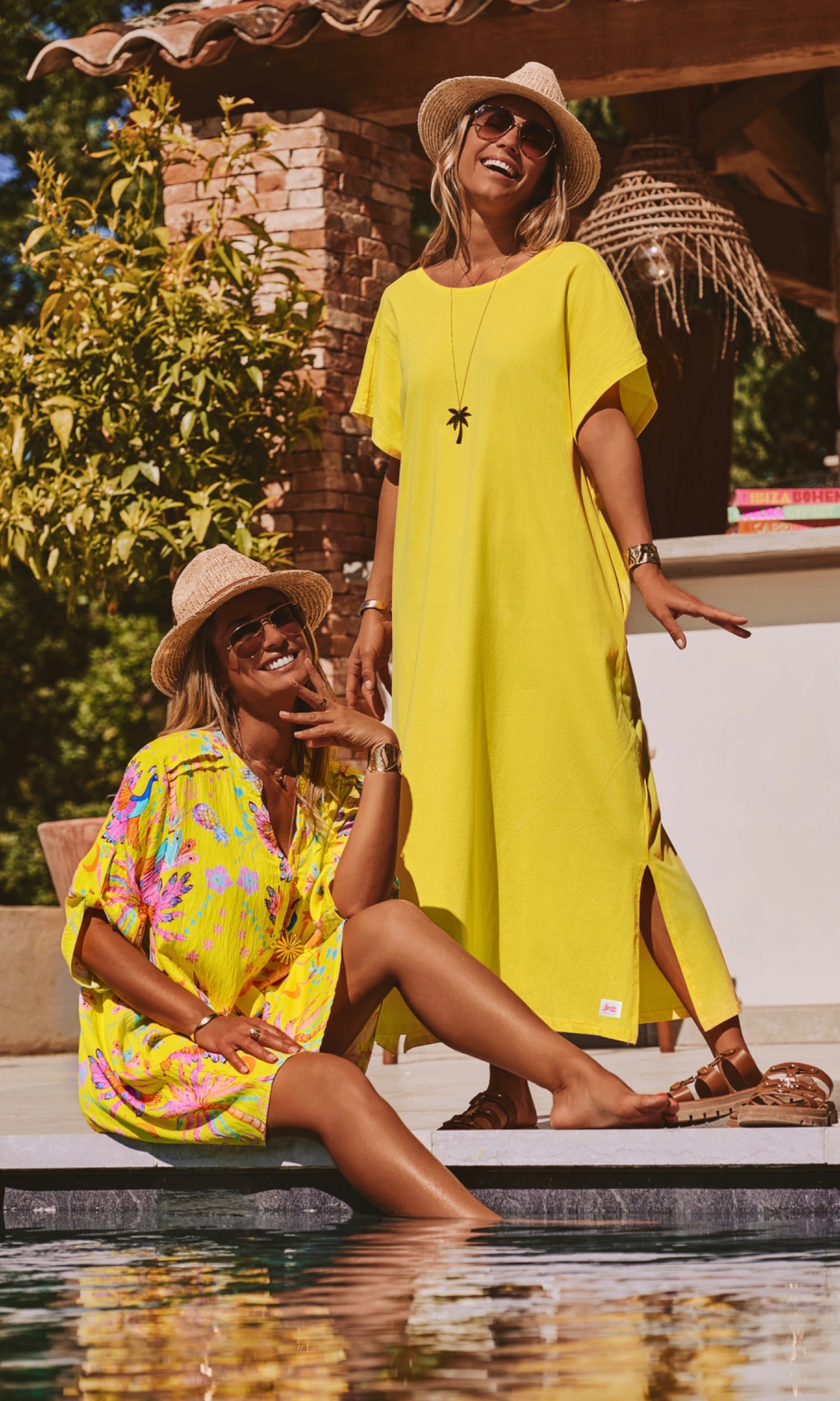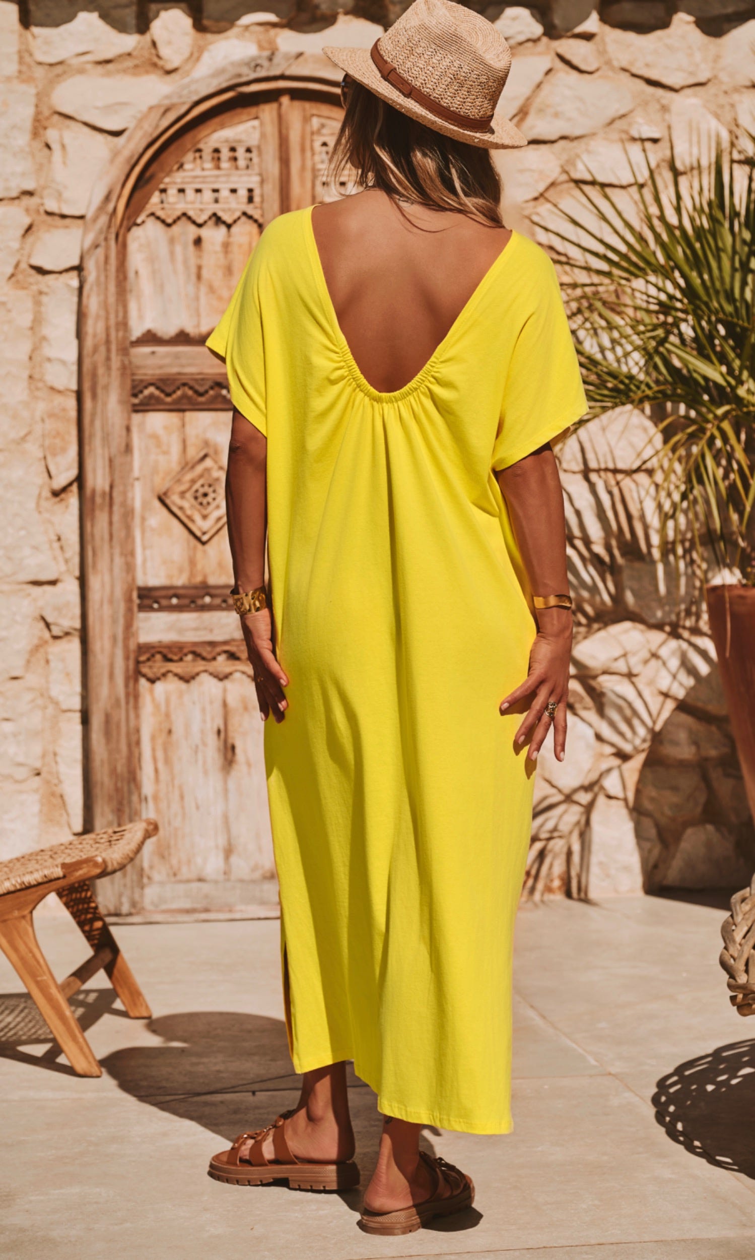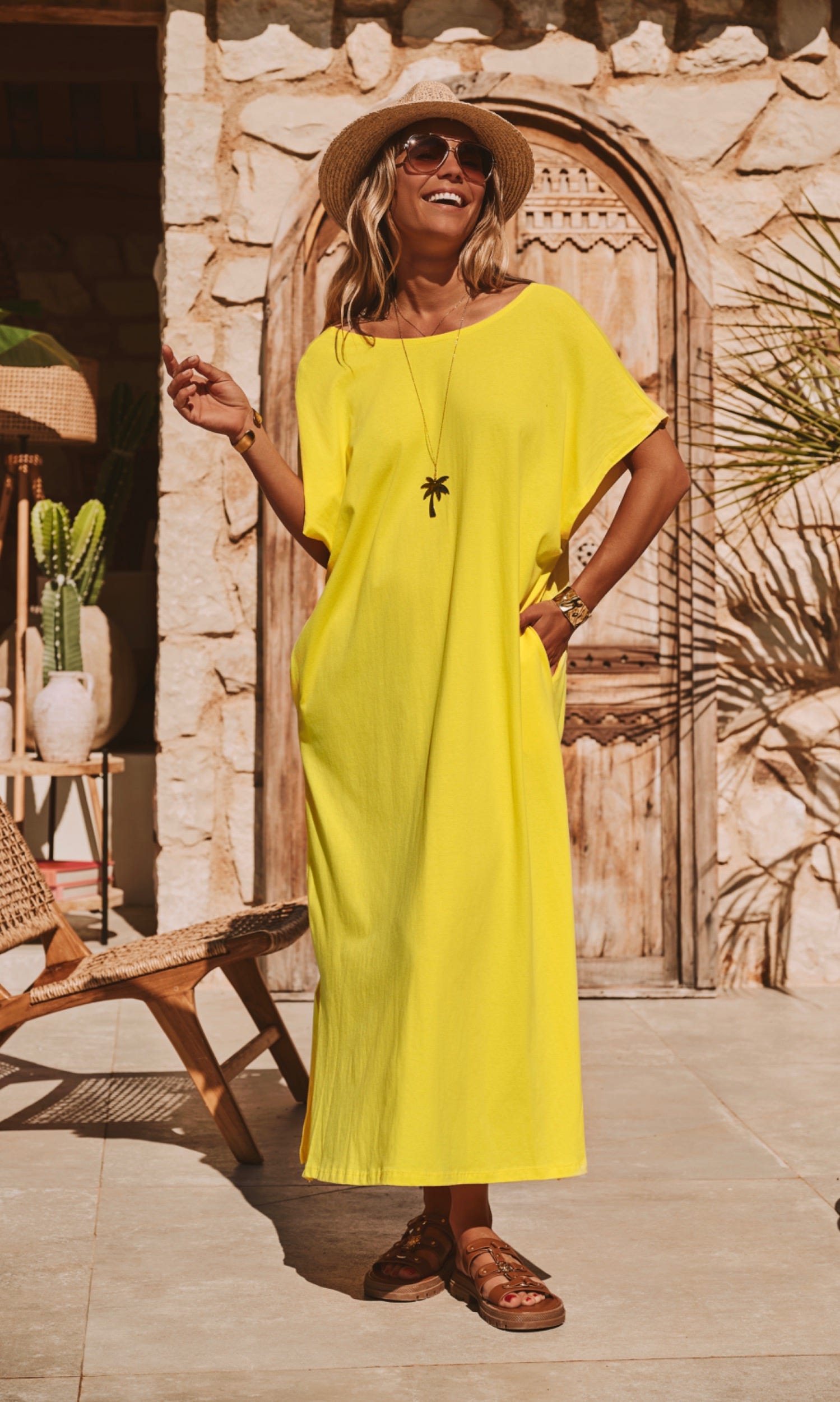Découvrez notre robe jaune élégante, à la coupe loose qui allie confort et style.