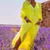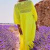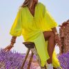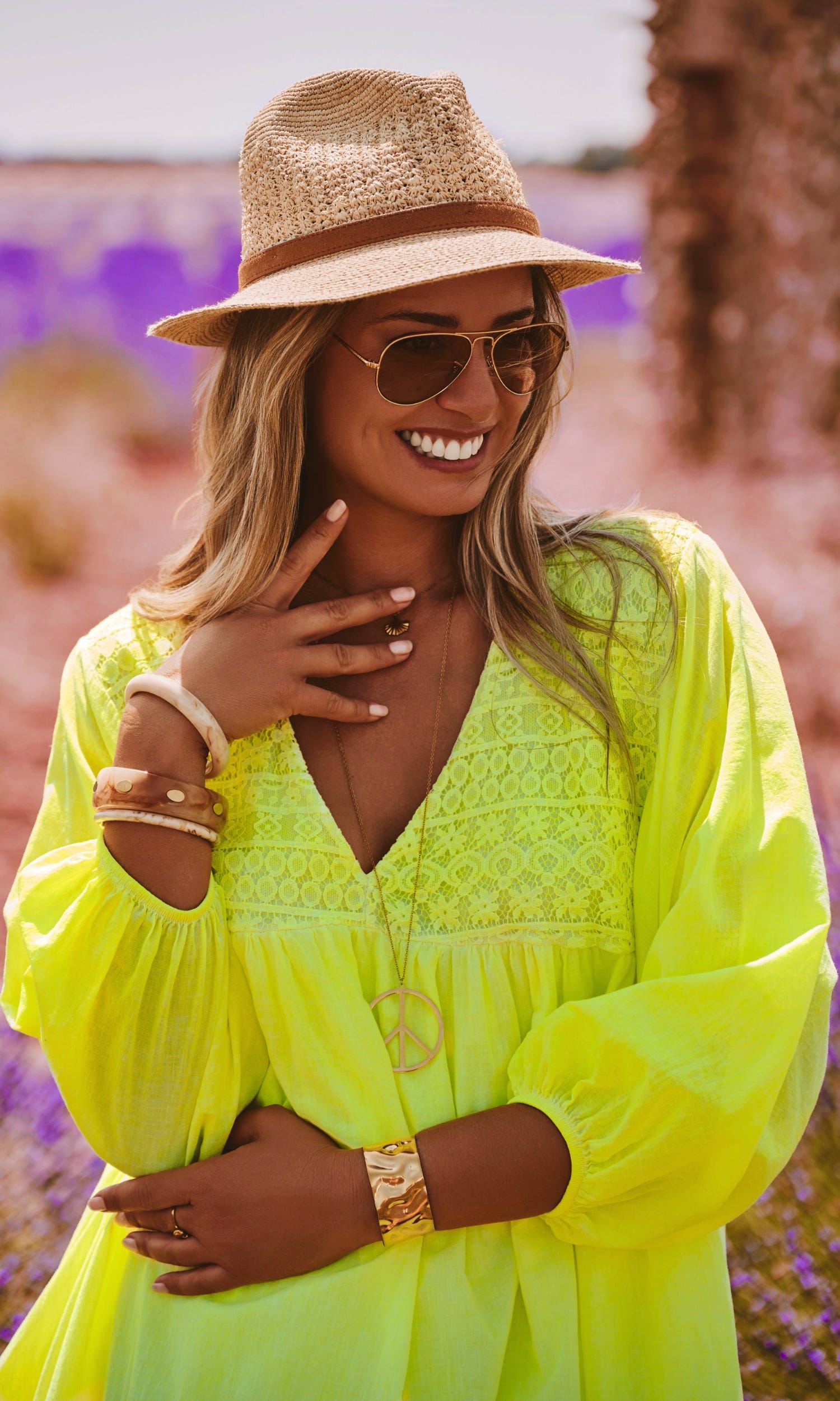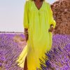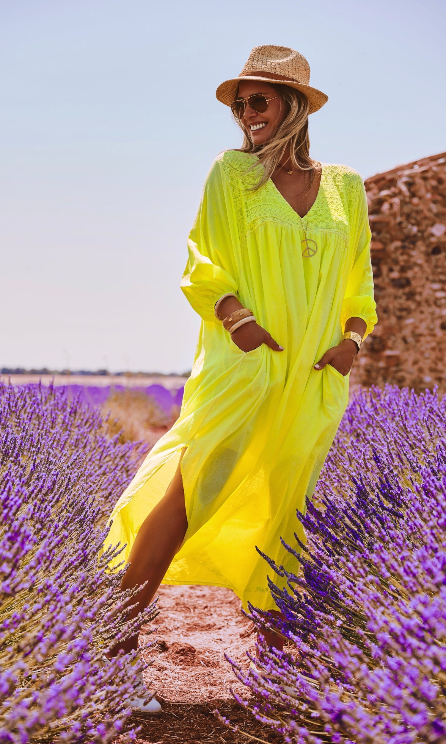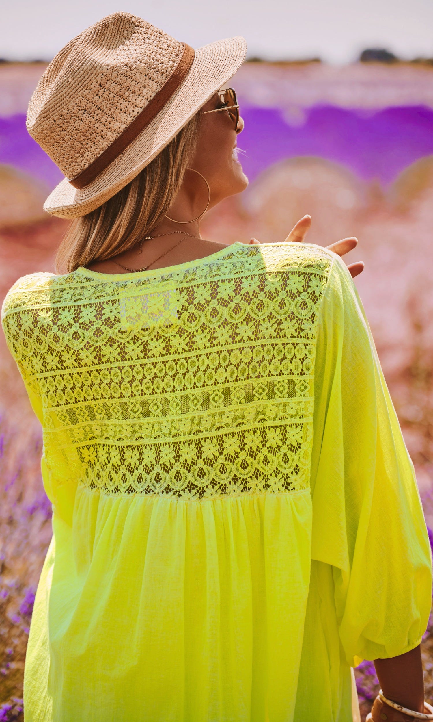 Découvrez cette robe jaune fluo en coton à la coupe oversize, alliant confort et élégance.