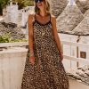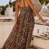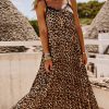 Découvrez notre robe camel léopard fluide longue à fines bretelles, entièrement plissée pour un effet élégant.