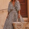 Découvrez notre robe longue beige léopard, élégante et féminine, à la coupe trapèze flatteuse.