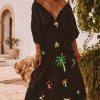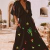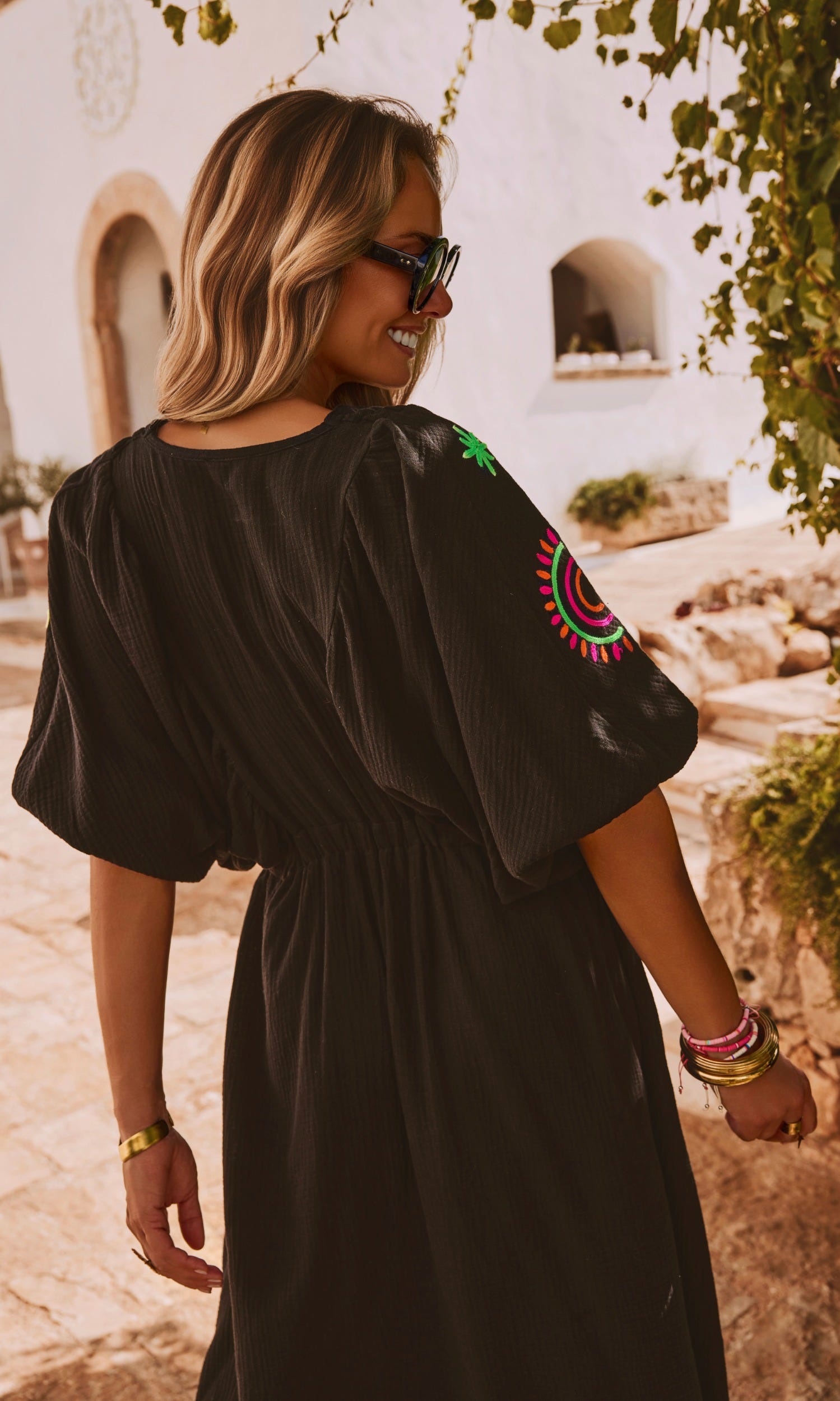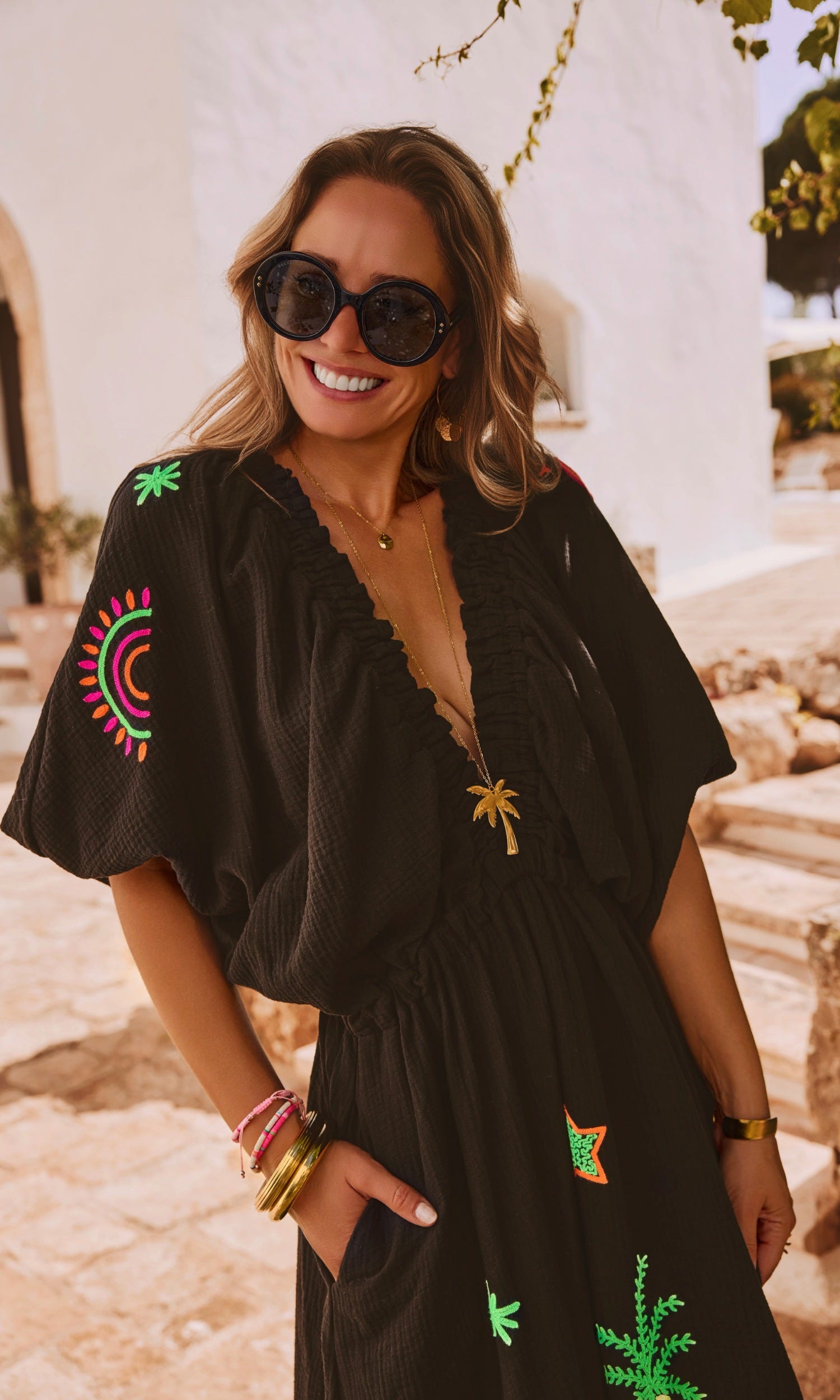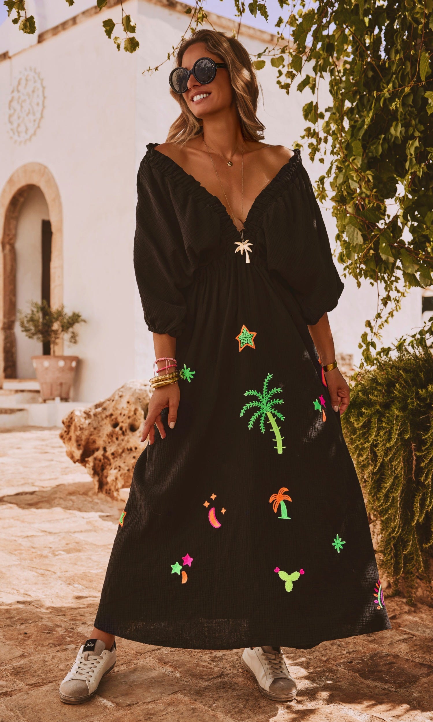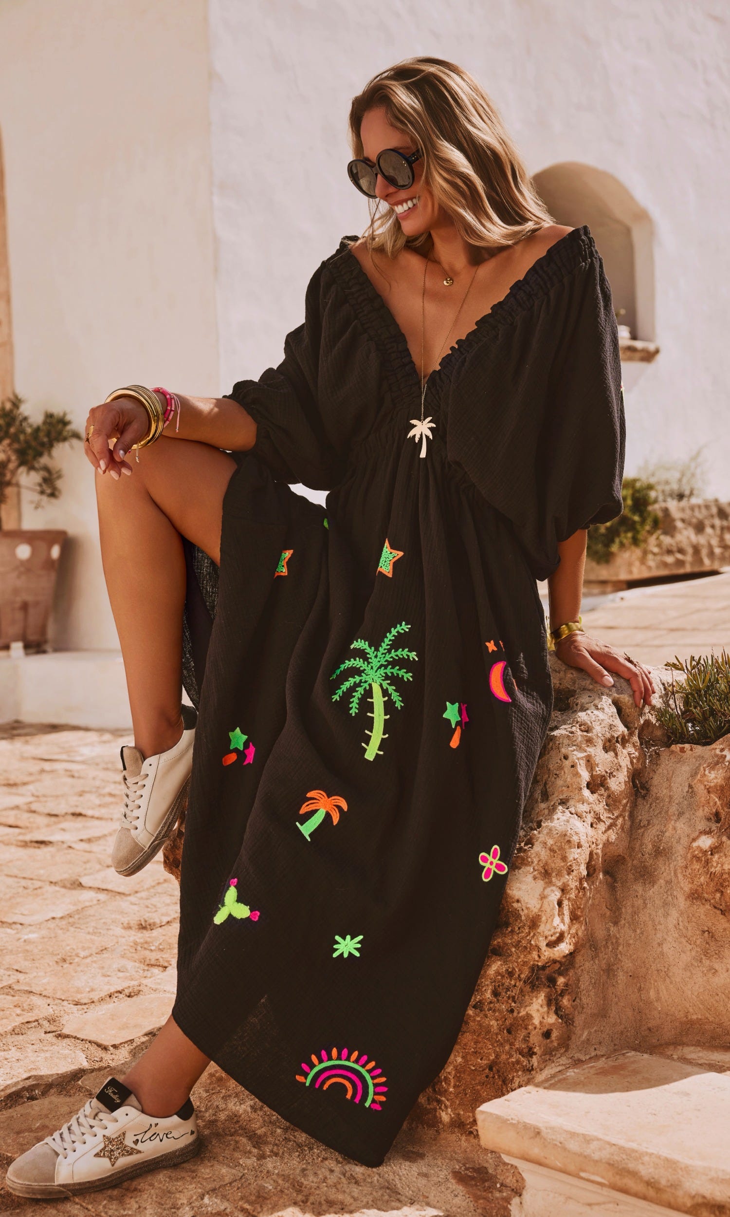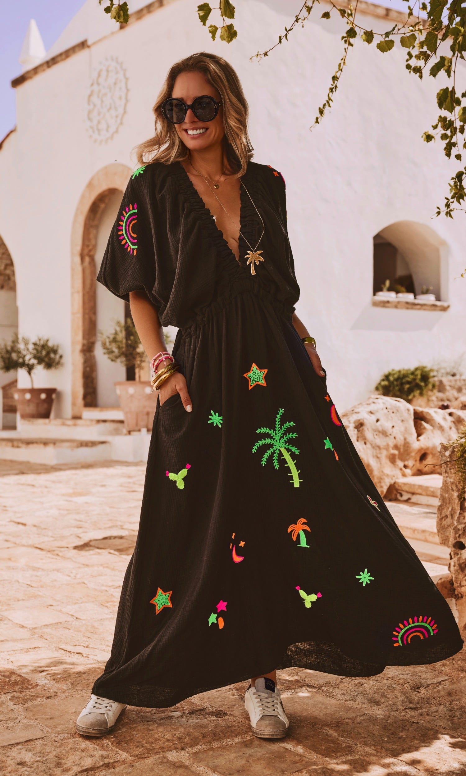 Succombez au charme de cette robe longue noire avec des broderies, parfaite pour un look tendance.